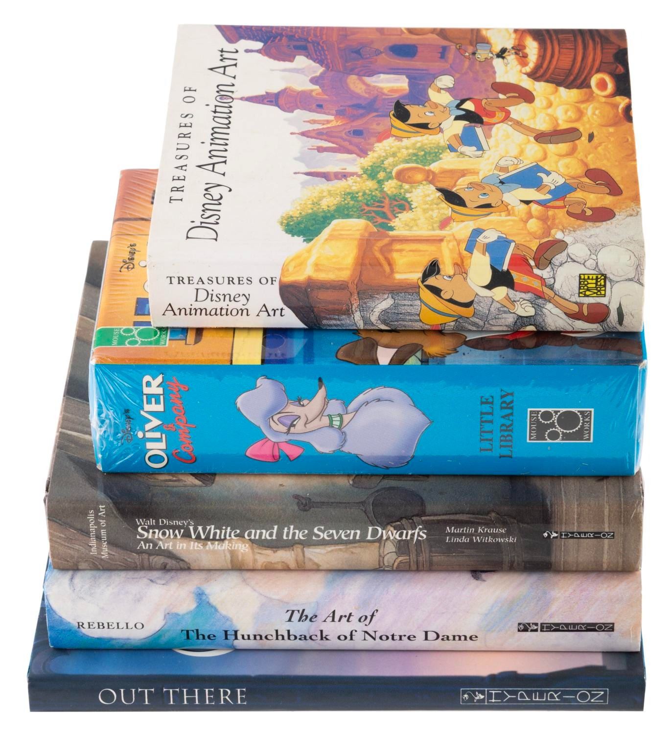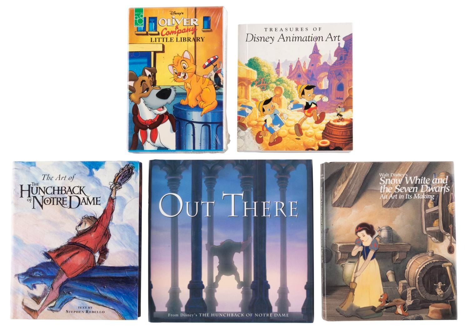 (Disney, 1980s-90s) A collection of Disney mini books. Included are "Out There" from "The Hunchback of Notre Dame," "The Art of the Hunchback of Notre Dame," "Snow White and the Seven Dwarfs - An Art in Its Making," "Treasures of Disney Animation Art," and Disney's "Oliver & Company Little Library" with four little storybooks based on the film. Measuring from 4.5" x 4" to 5.75" x 5.75", the books are in very good condition, with the "Oliver and Company" set sealed as new.