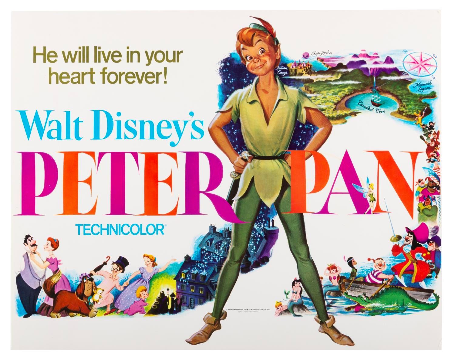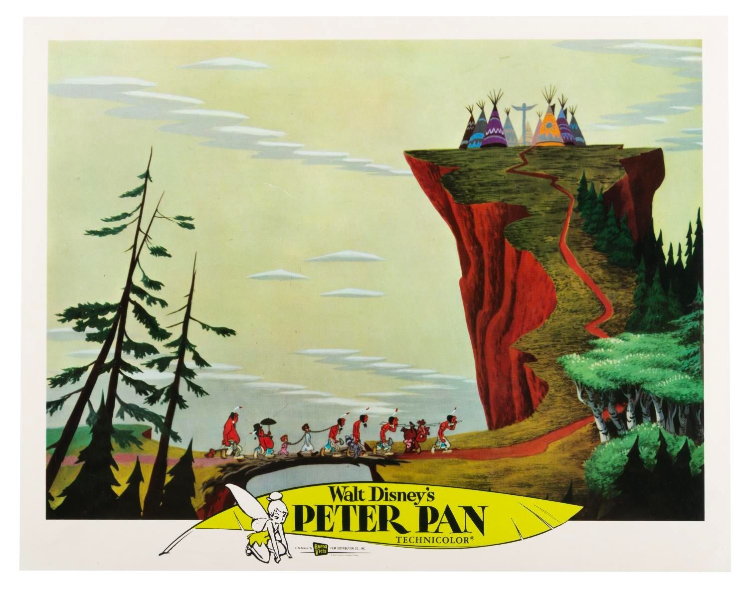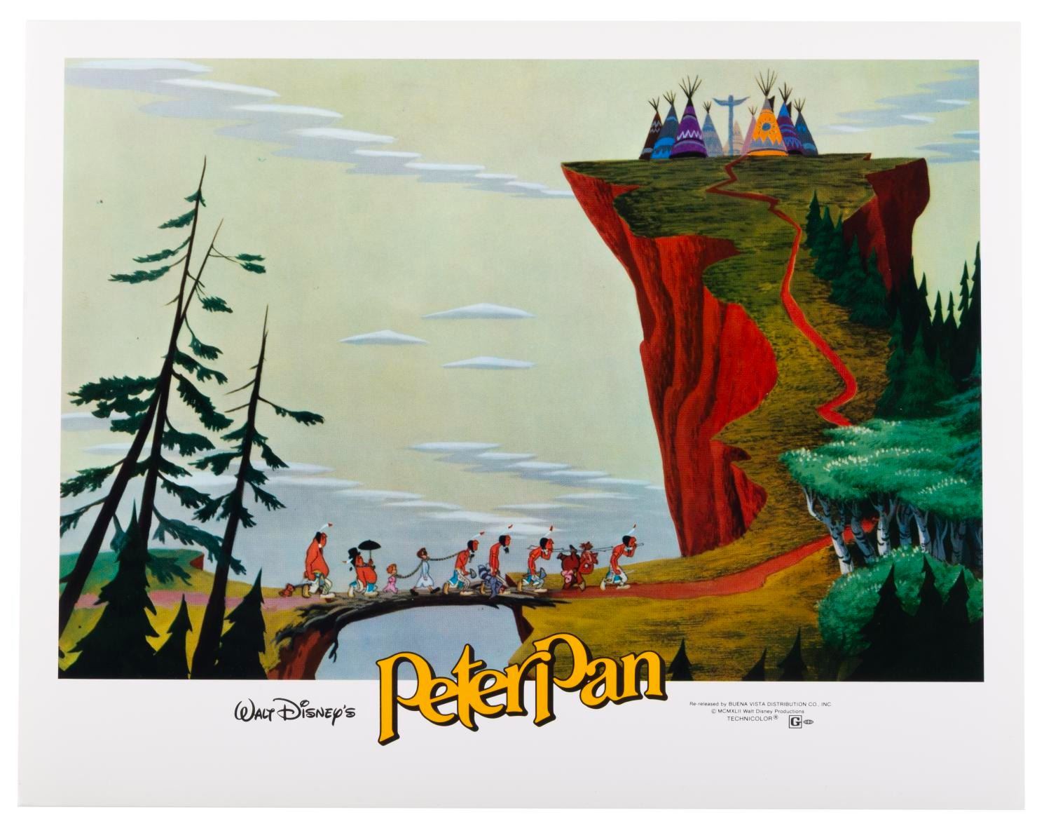 (Disney, 1958-76) A collection of three lobby cards from the 1958, 1962, and 1976 re-releases of "Peter Pan. " Measuring 11 " x 14 " each, the lobby cards display in good to very good condition with creases, scratches, light discoloration from age, and wear.