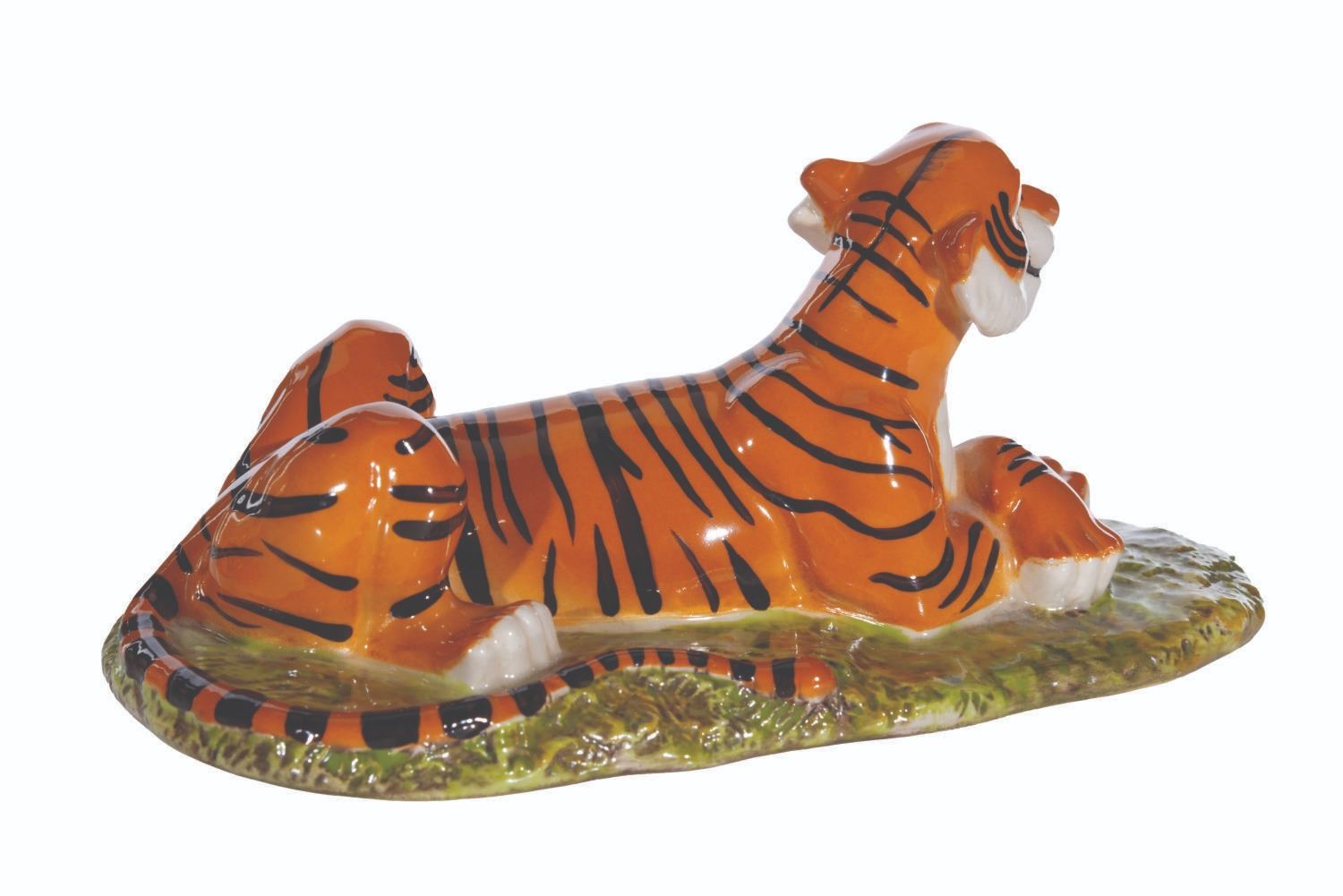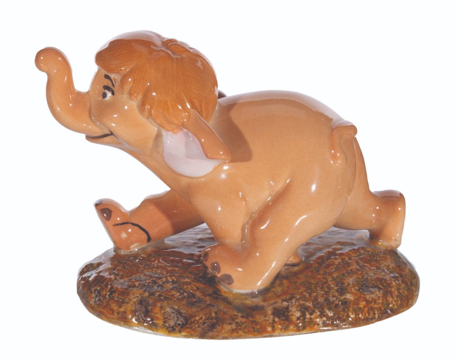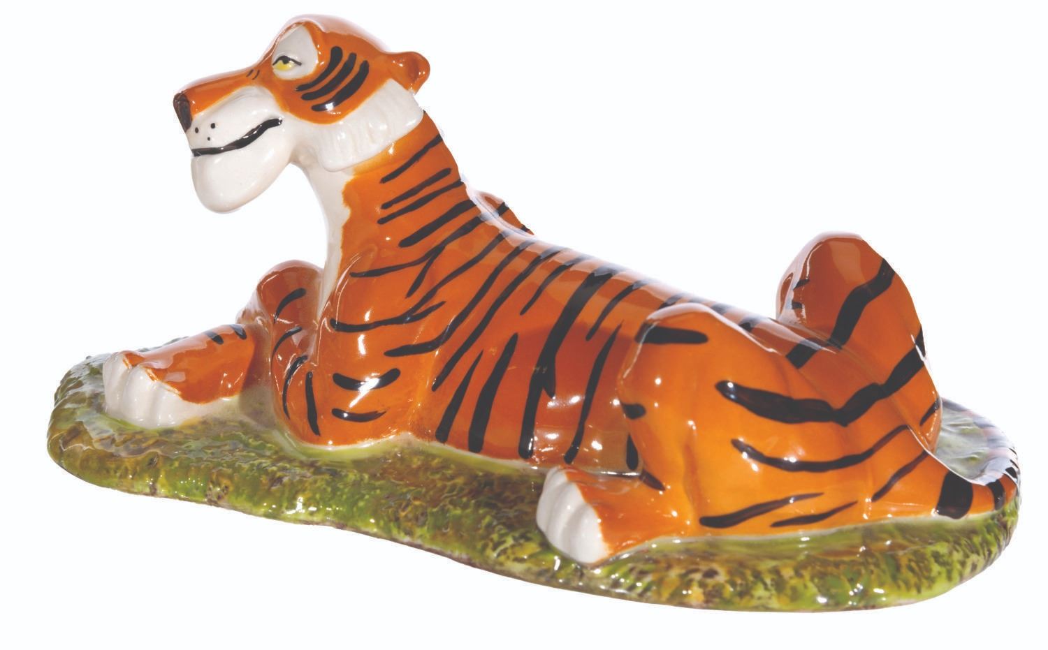 (Royal Doulton, 2000) Four Disney Showcase Collection ceramic figurines of Mowgli, Baloo, Shere Khan, and Hathi Jr. from "The Jungle Book," manufactured by Royal Doulton. Measuring 3.5" to 4.75" tall, the figures are in very good condition with light soiling from display and age.