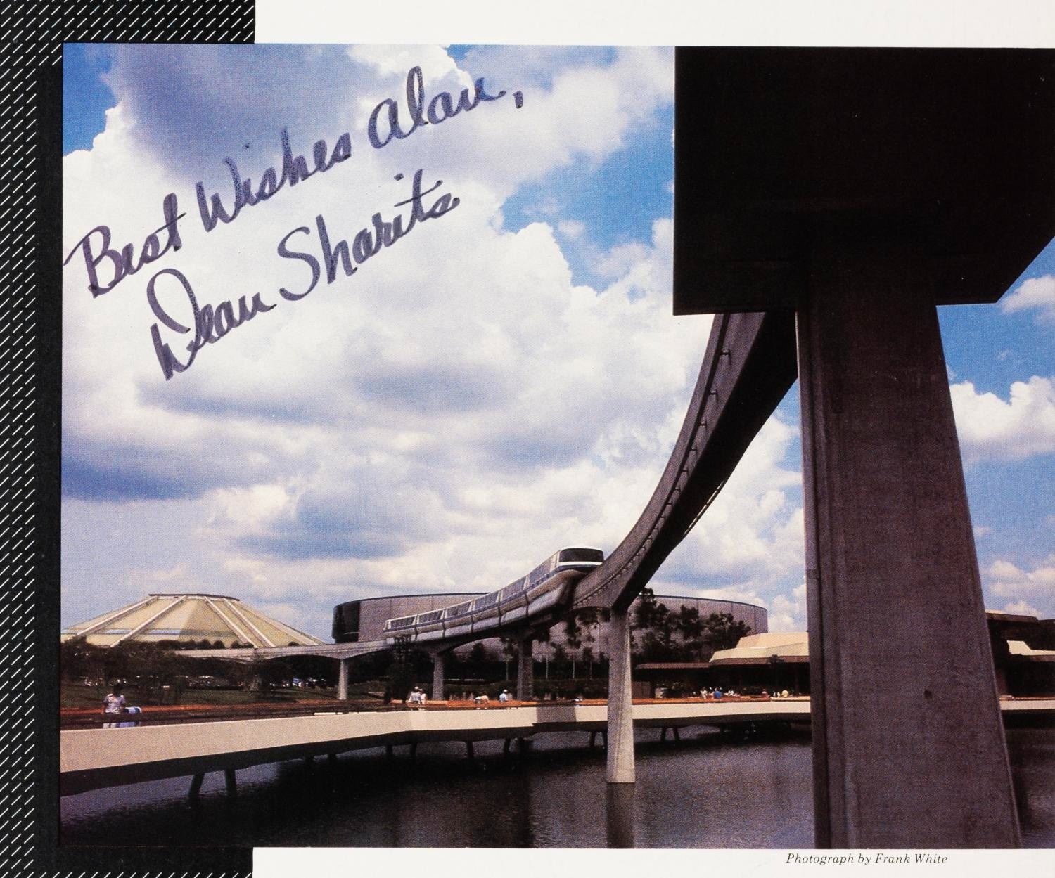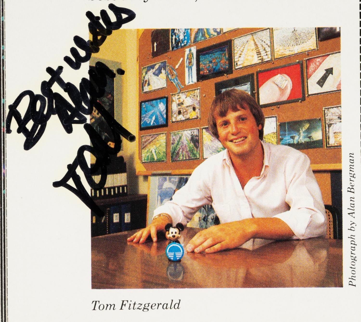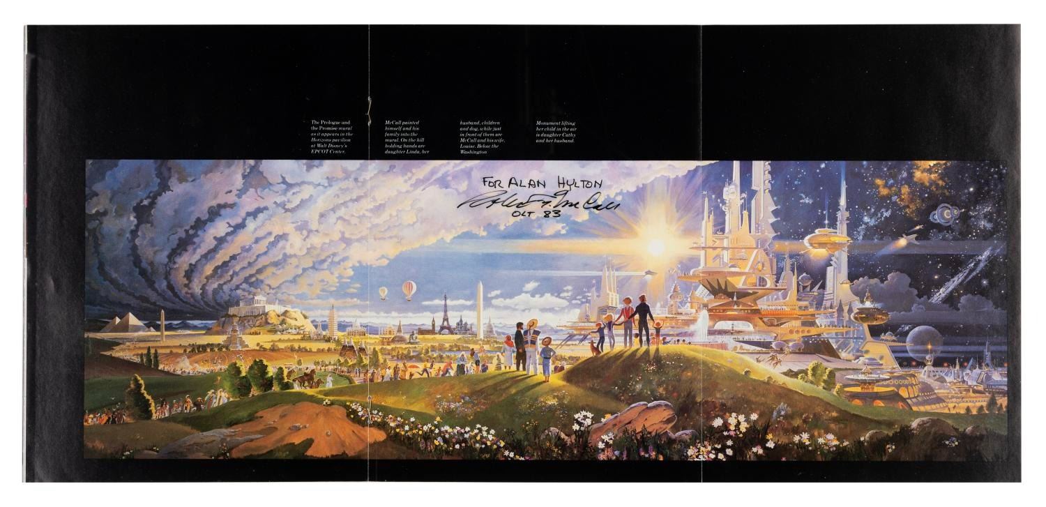 (EPCOT Center, 1983) A collection of five magazines signed by Walt Disney Imagineers, highlighting the new Horizons attraction. Across the five issues are signatures with personalized dedications by Tom Fitzgerald, Marty Sklar, John Hench, Ned Landon (twice), Robert McCall, and Dave Burke. Measuring 8.25” x 11” each, the magazines are in good condition with creases and wear from use.