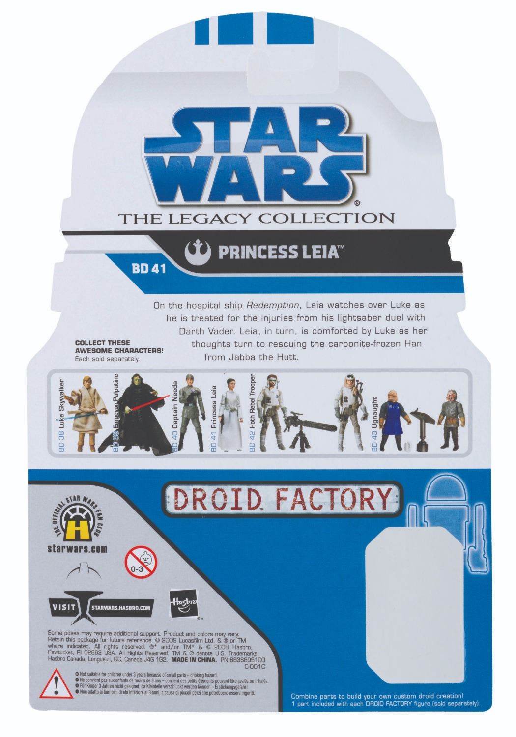(Hasbro, 2008-2009) A collection of 35 Star Wars The Legacy Collection unused cardbacks, including cardbacks for Luke Skywalker, Han Solo, Darth Vader, and more. Measuring 6" x 9", the cardbacks are in very good condition with light wear.