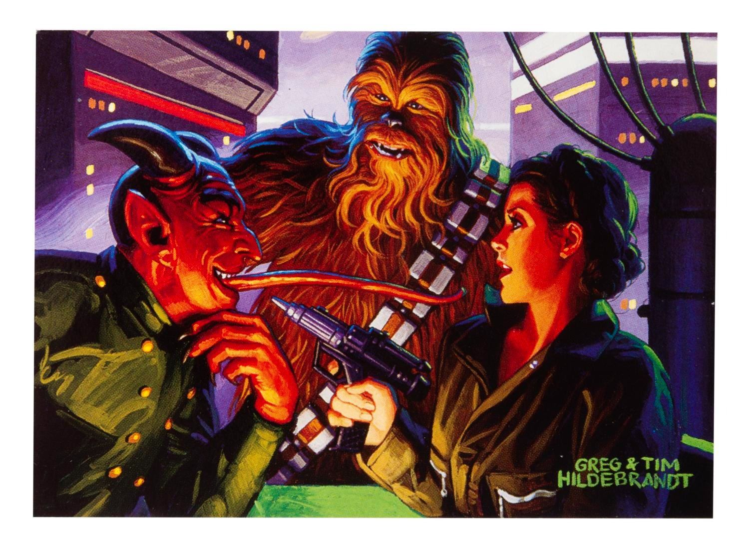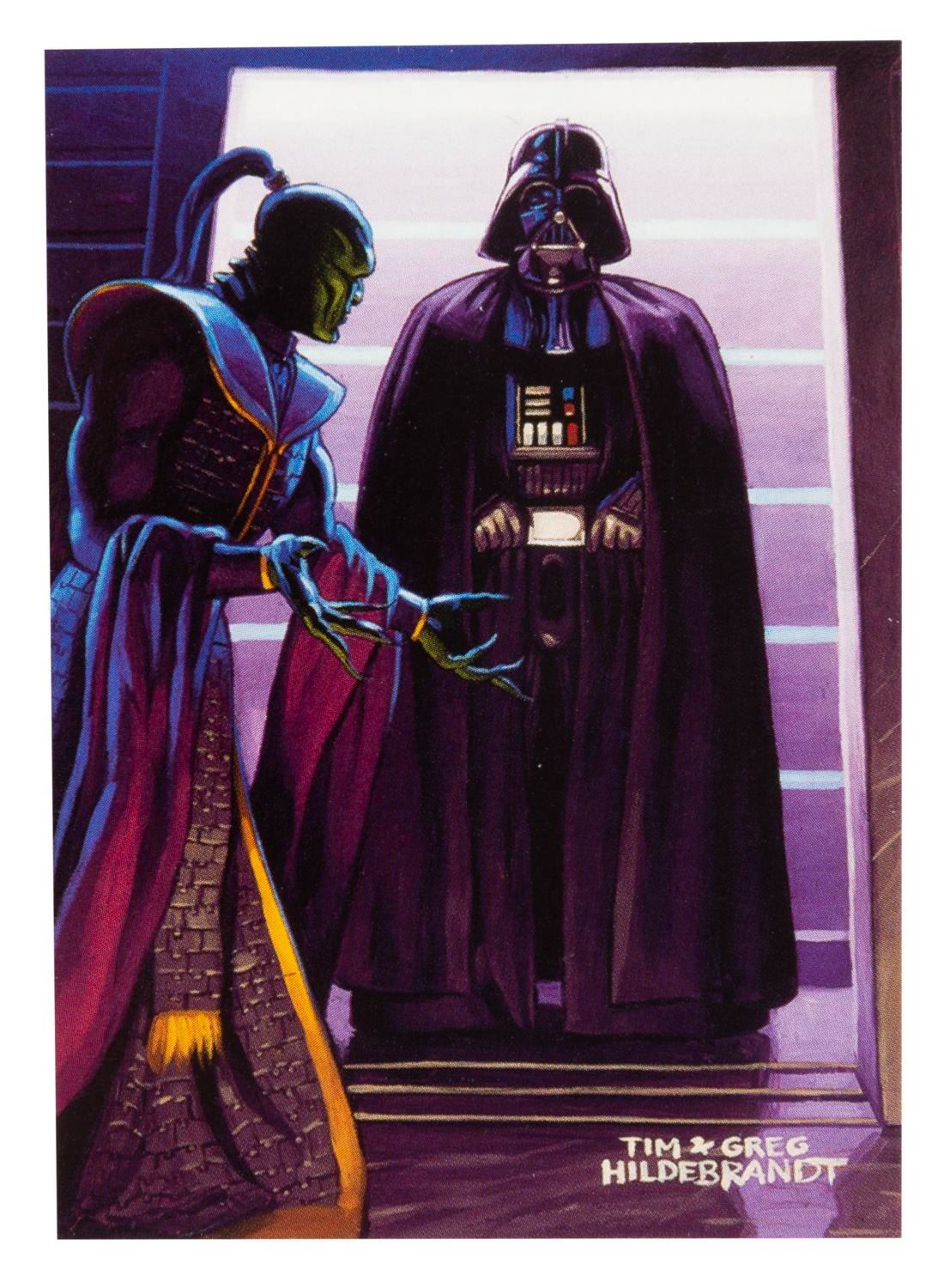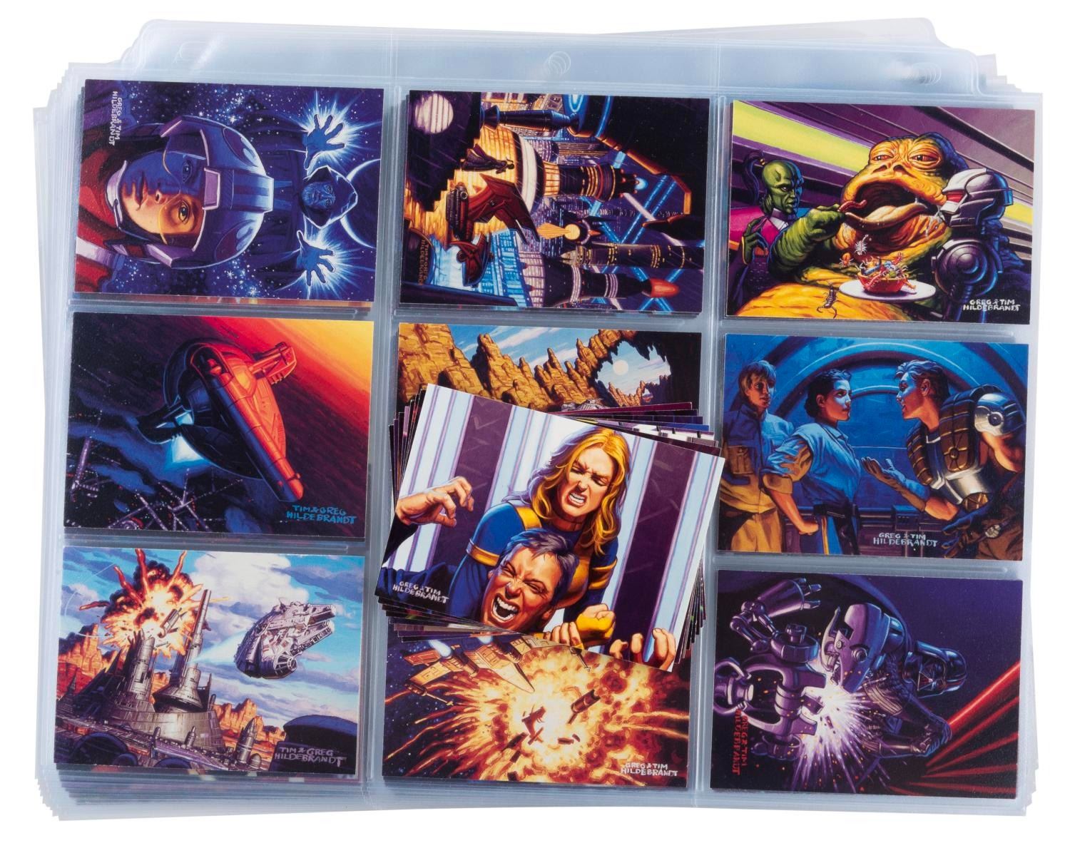 (Topps, 1996) A complete standard set of 90 Star Wars: Shadows of the Empire trading cards, missing only the very rare chase cards numbered 73 through 82 out of the full run of 100. Each card features an original color illustration by artists Greg and Tim Hildebrandt, and is in very good to fine condition with very light corner dings.