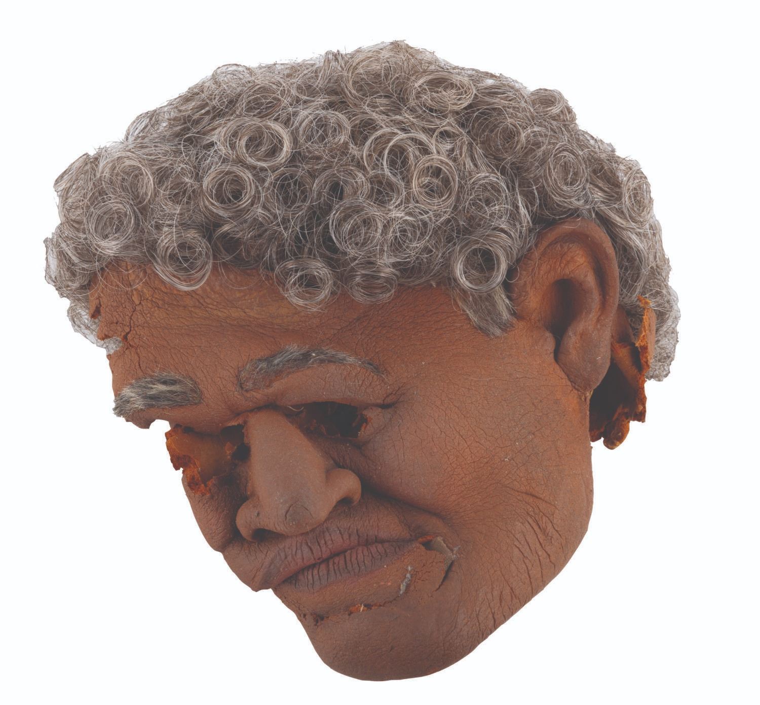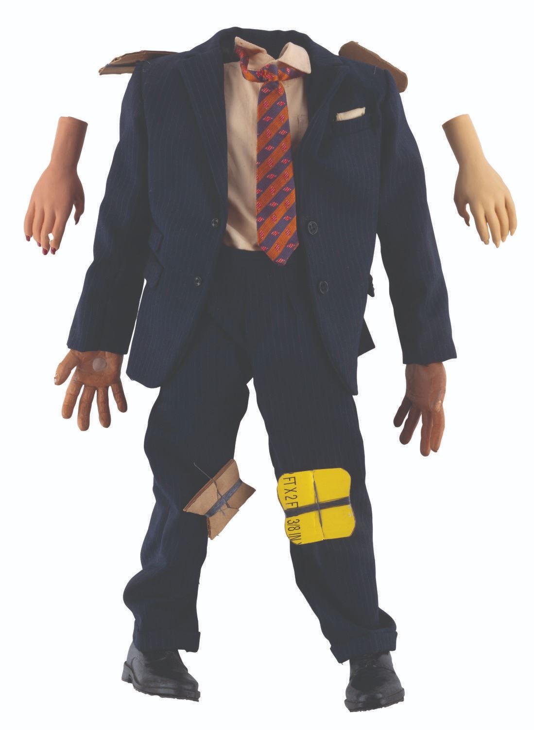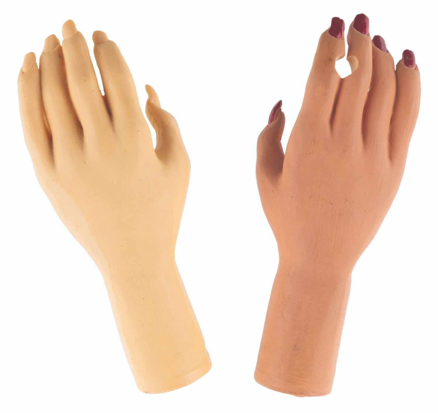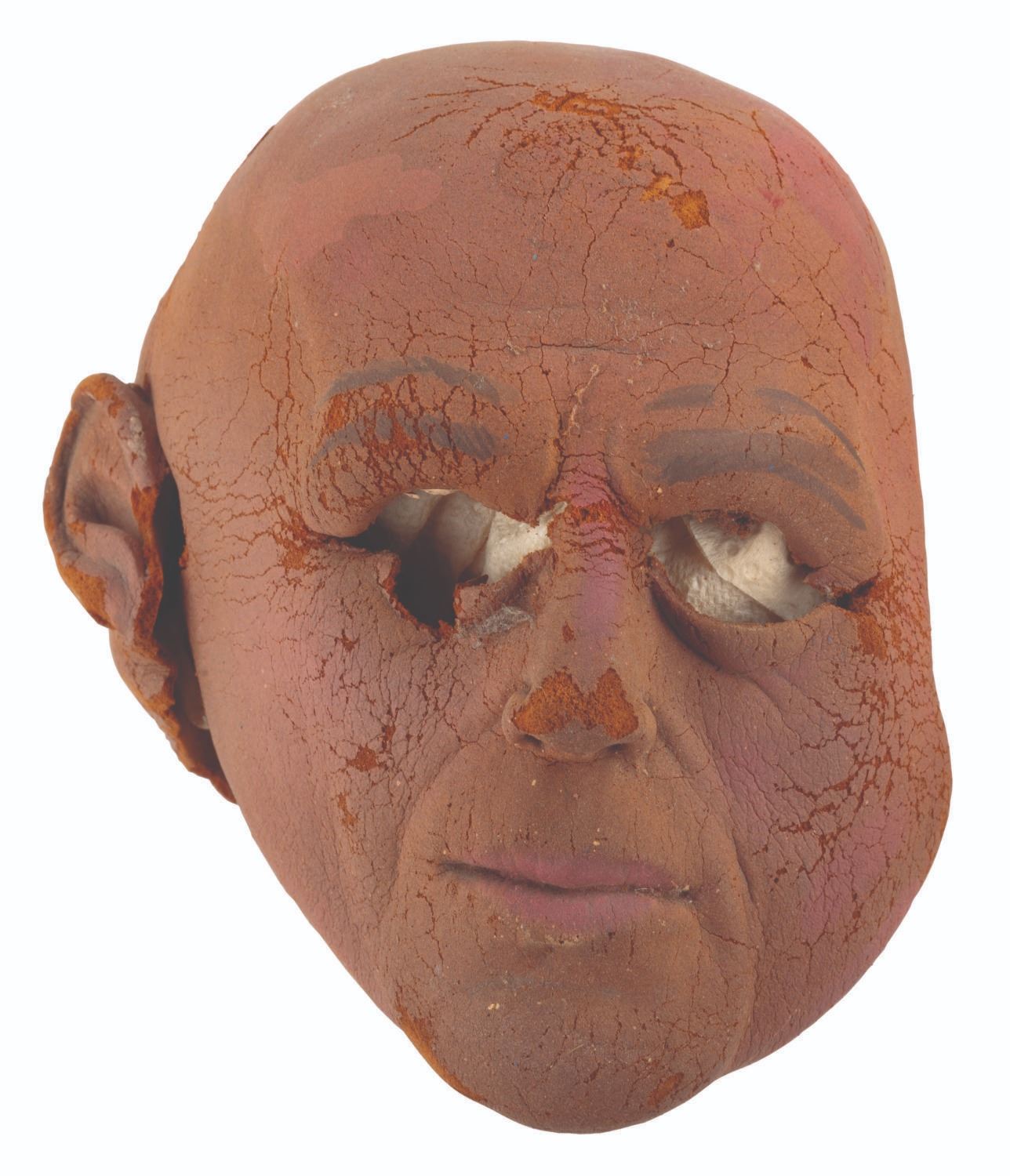 (Paramount, 2004) A collection of puppet props and costume pieces from “Team America: World Police,” the political comedy from the creators of “South Park.” This lot includes the body of Spottswoode, the eccentric team leader, in his full suit costume. Five puppet head skins are included for Spottswoode, female lead Sarah, and three background characters. The lot also has two instructional sheets on how to dress the puppets, two pieces of black fabric, and two female puppet hands, one of which is painted. Ranging in size from the to the 17” tall Spottswoode puppet, the props are in fair to very good condition with tears, cracks, flaking, creases, material loss, and wear from production use.