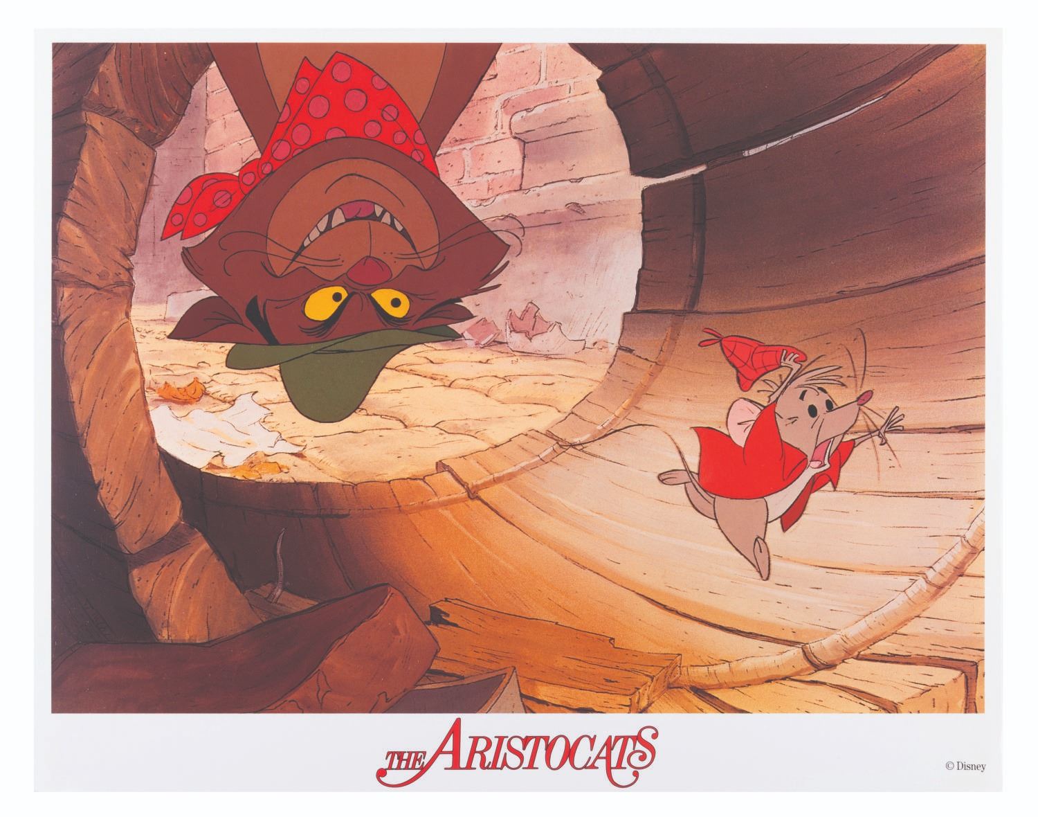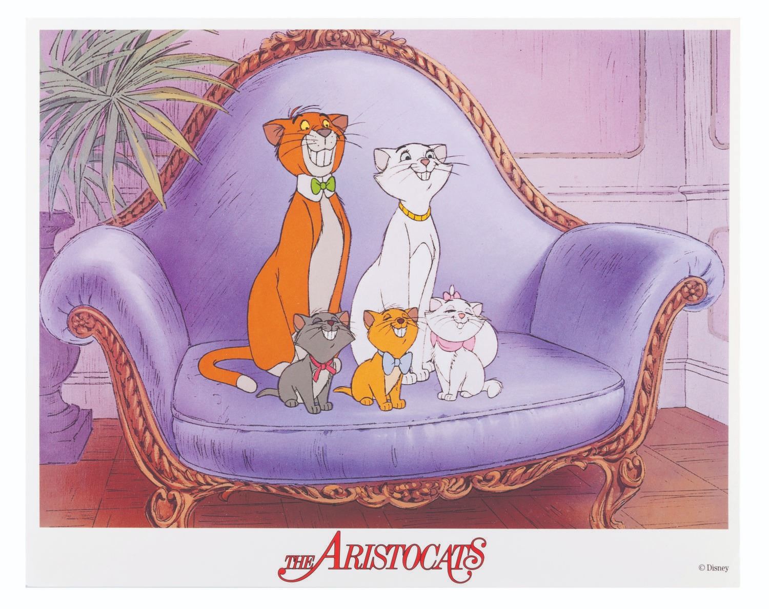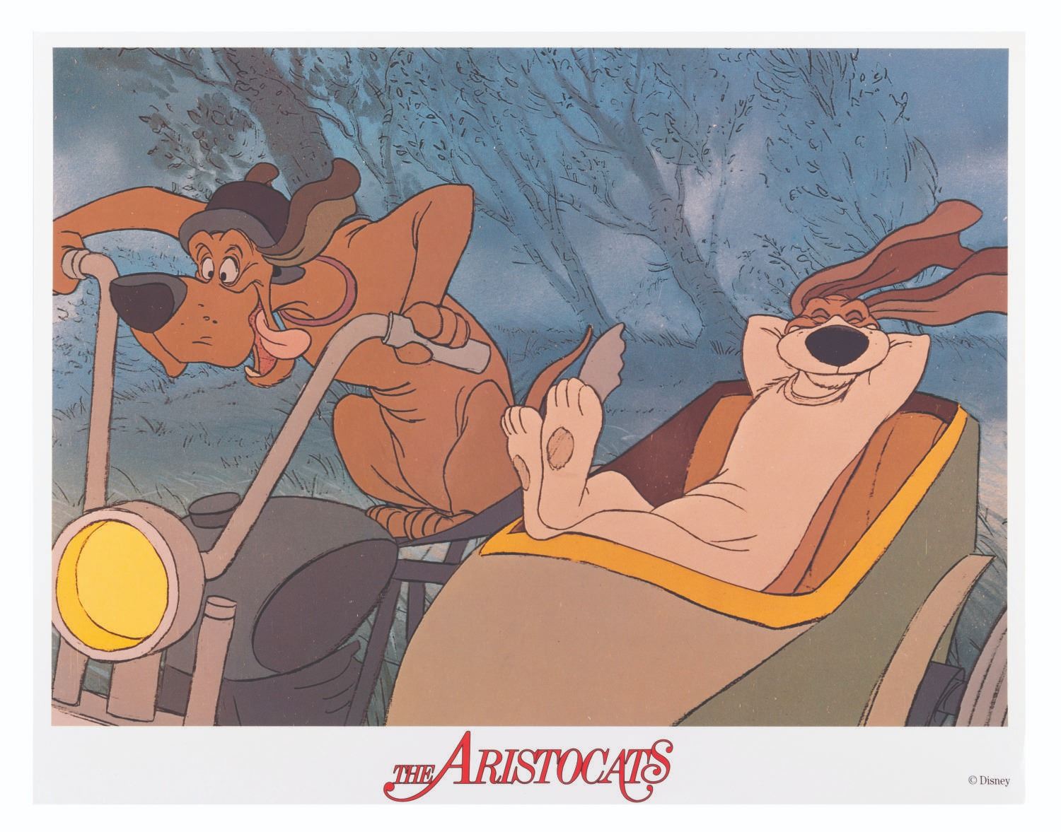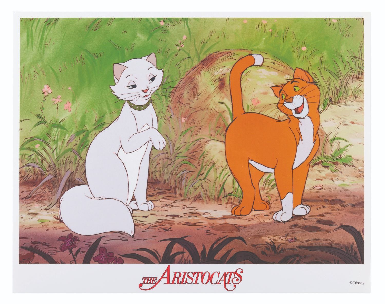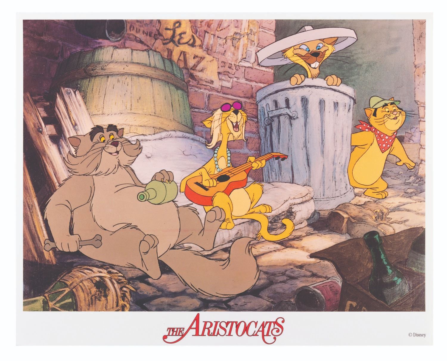 (Disney, 1970) A collection of eight original release lobby cards from “The Aristocats.” The 11” x 14” cards are all in very good condition with a very light crease to the lower right corner on each.
