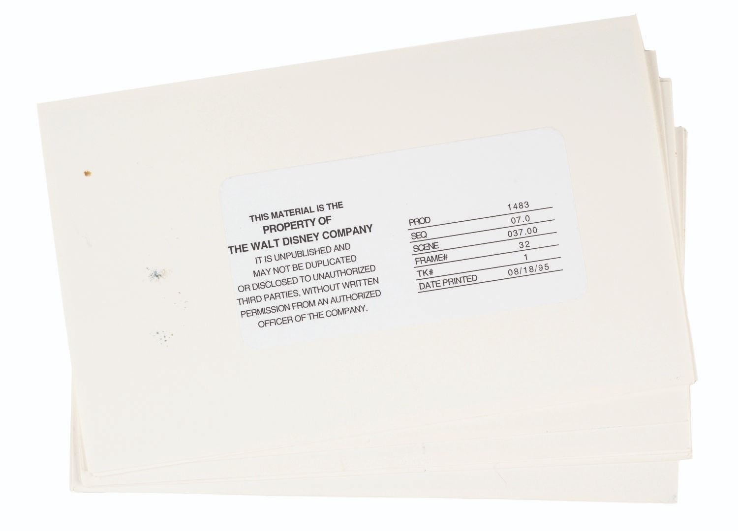 (Disney, 1995-1996) A collection of 33 Studio-printed reference images from “The Hunchback of Notre Dame.” Each high-quality print includes a Studio sticker listing the Studio Reference ID, the sequence, the scene, the frame, and the date printed. Ranging in size from 3.5” x 5.75” to 4.25” x 7”, the prints are in fine condition.