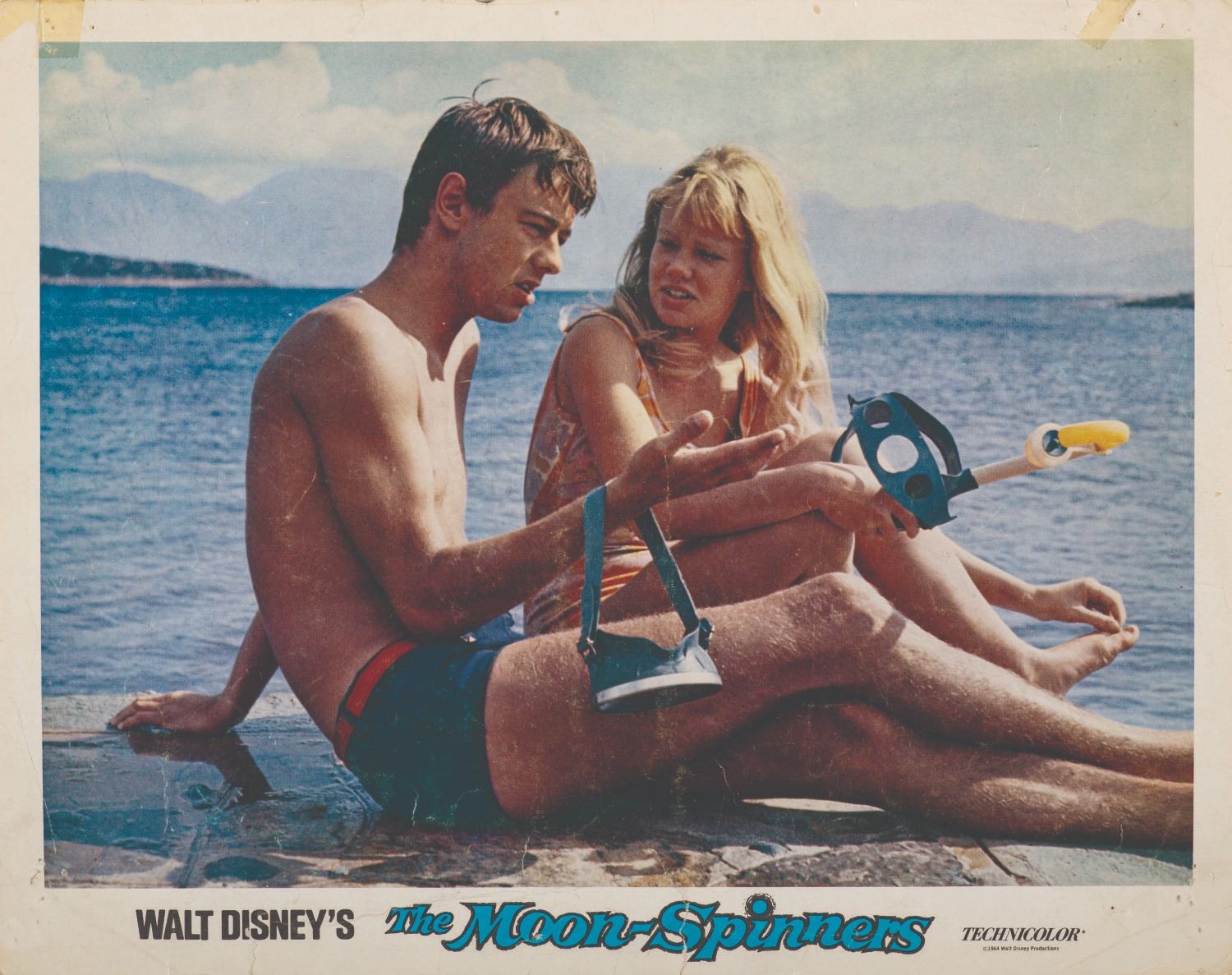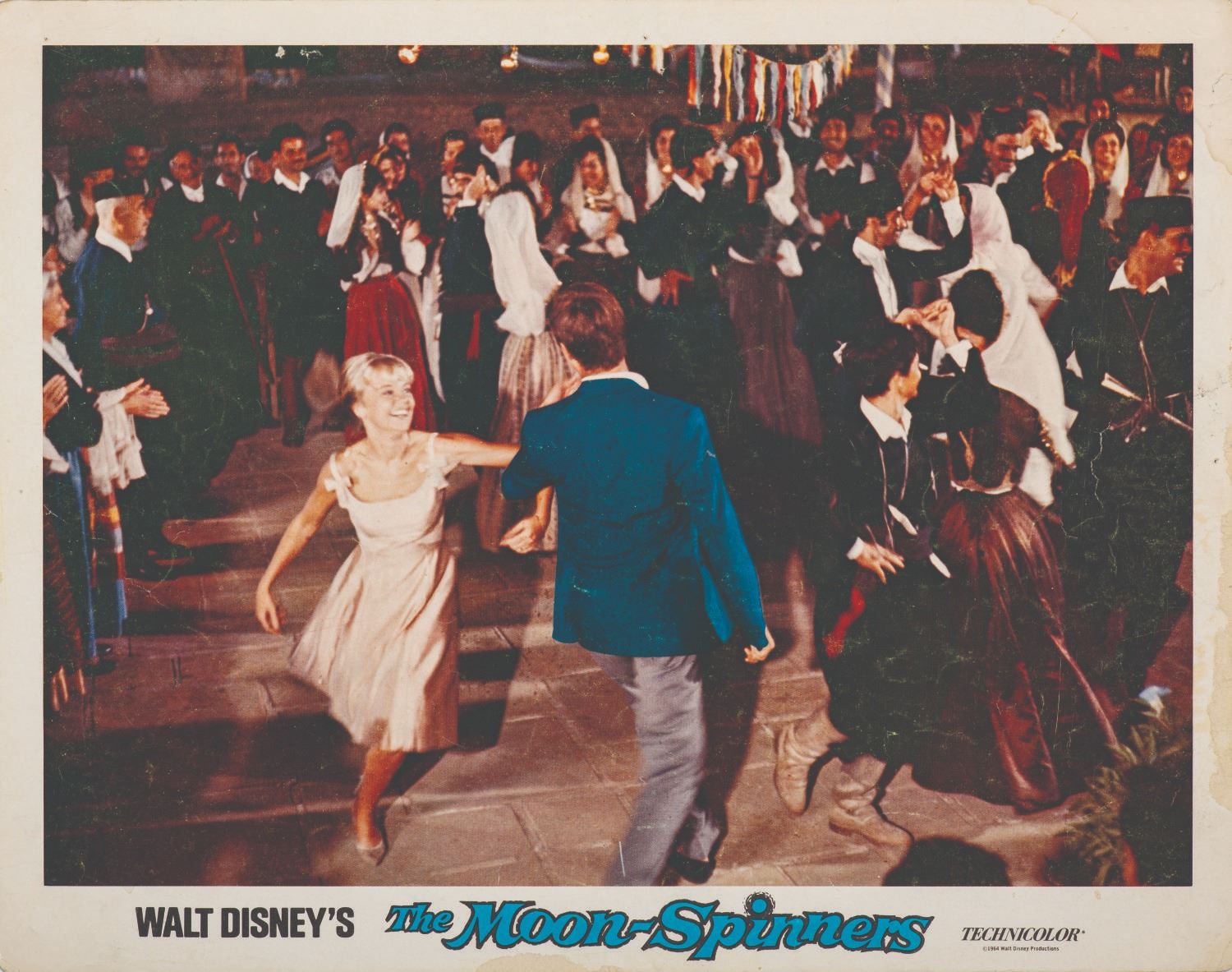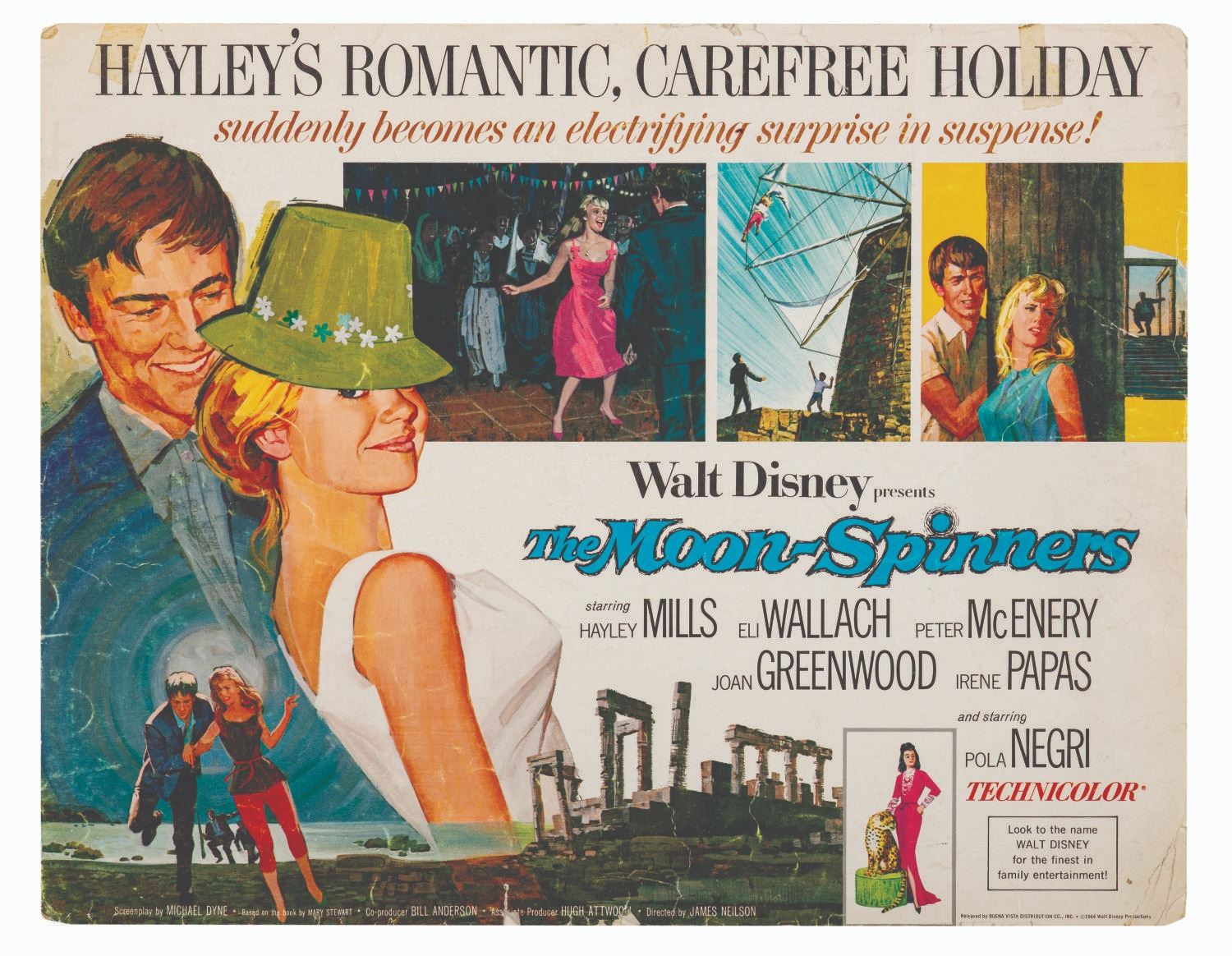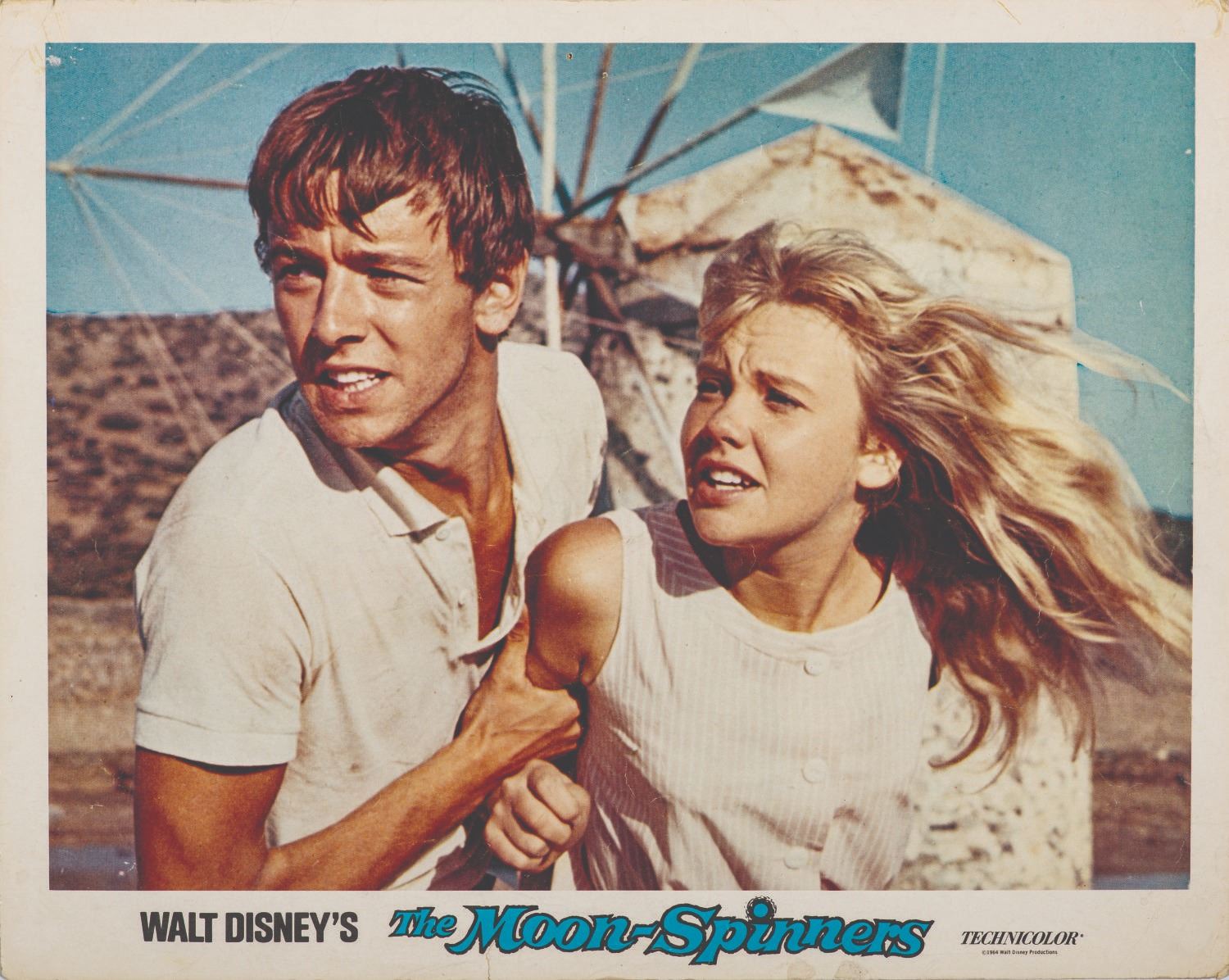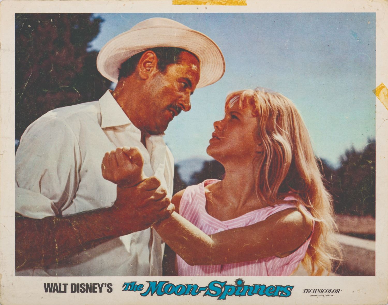 (Disney, 1964) A collection of 8 original release lobby cards for Walt Disney's 1964 film "The Moon Spinners." Measuring 11" x 14", the cards including the original envelope are in good condition, with edge wear, creases, and adhesive tape on the reverse.