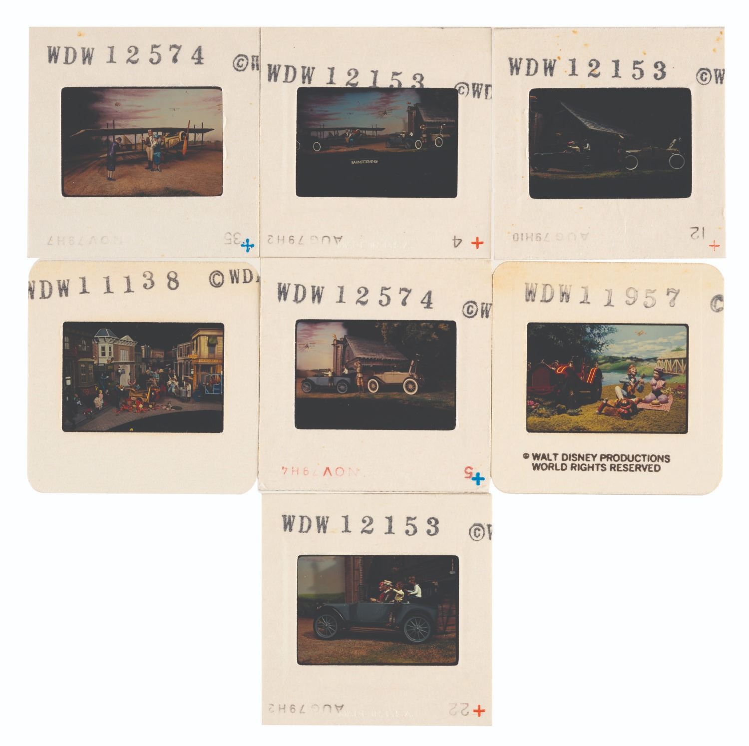 (EPCOT, 1979) A collection of seven slides of WED Imagineering’s models of scenes for the World of Motion attraction at EPCOT. These slides beautifully capture the developmental versions of soon-to-be familiar scenes of the original attraction’s automotive and barnstorming scenes. Each 35mm slide measures 2" x 2" and is in very good condition.