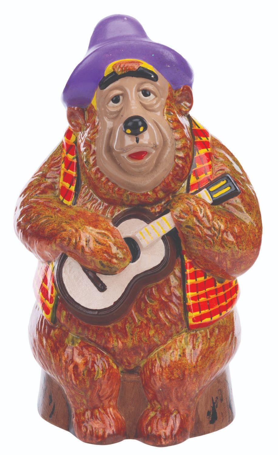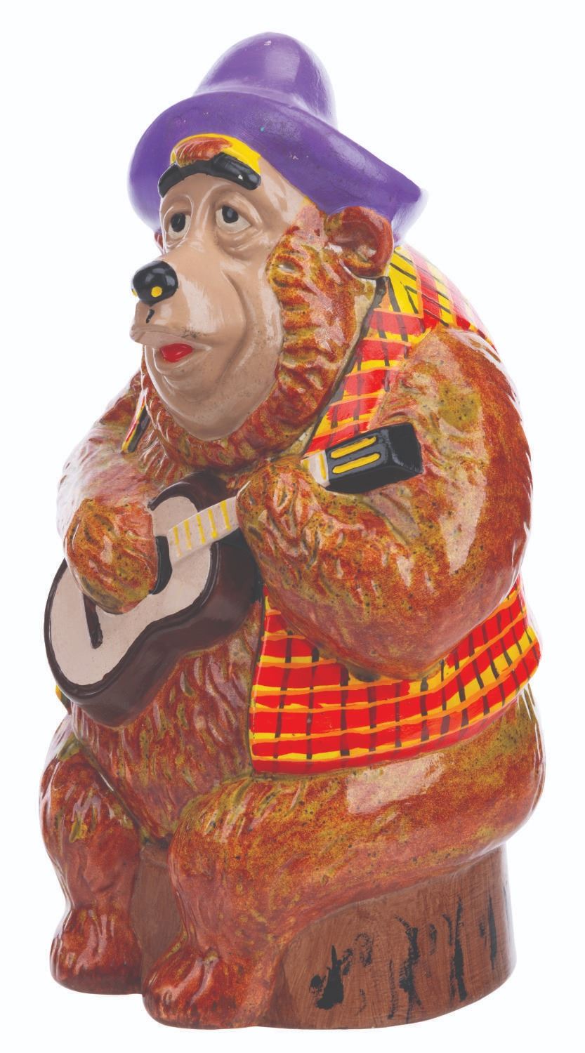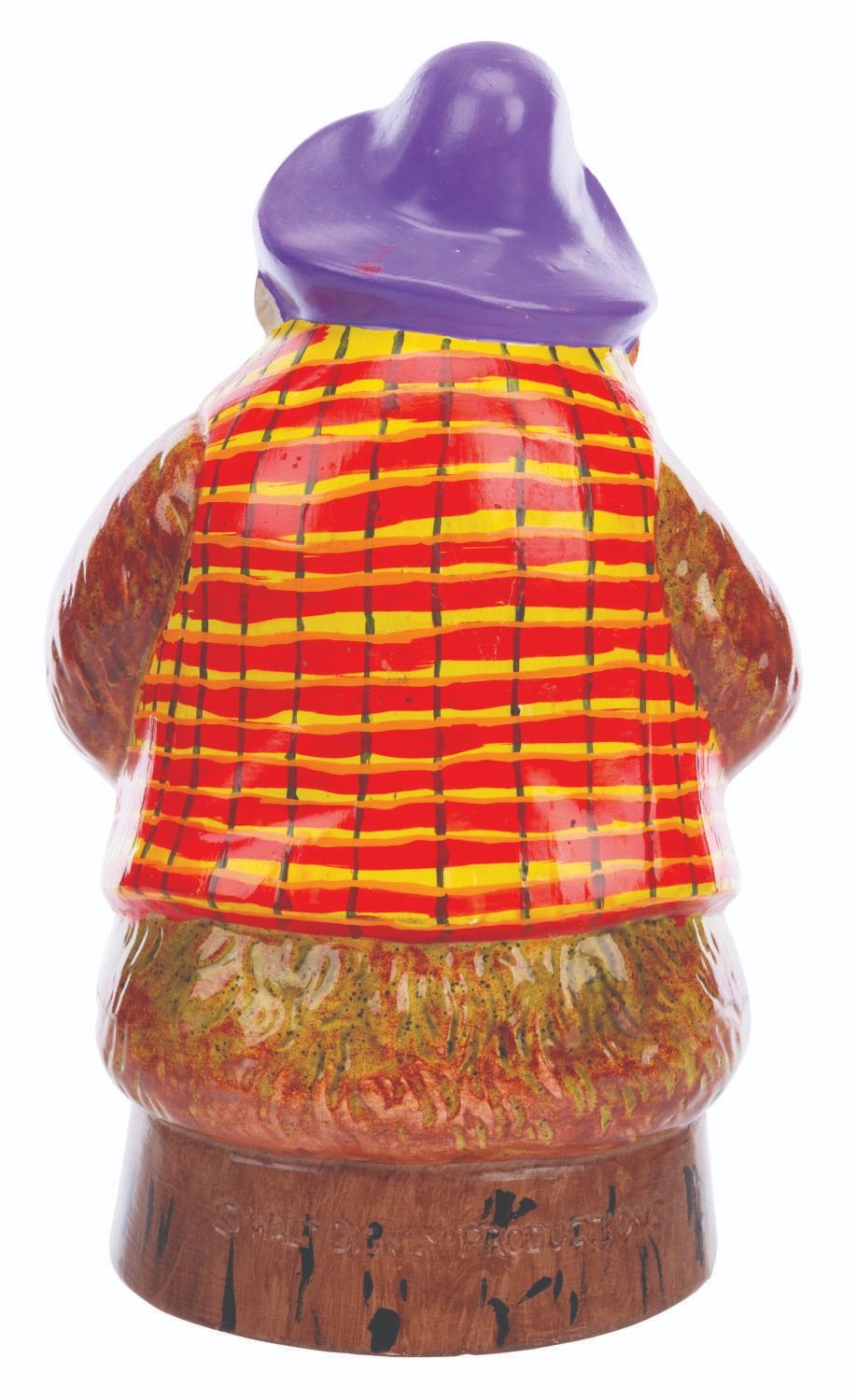 (Disneyland, 1970s) A hand-painted ceramic figure of Big Al from the Country Bear Jamboree. The figure is brightly painted and bears a Walt Disney Productions backstamp. Measuring 5.5” in diameter x 9.5” high, the souvenir figure is in very good condition with light wear from display.
