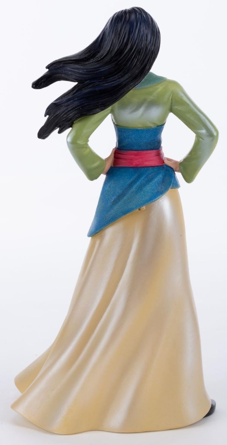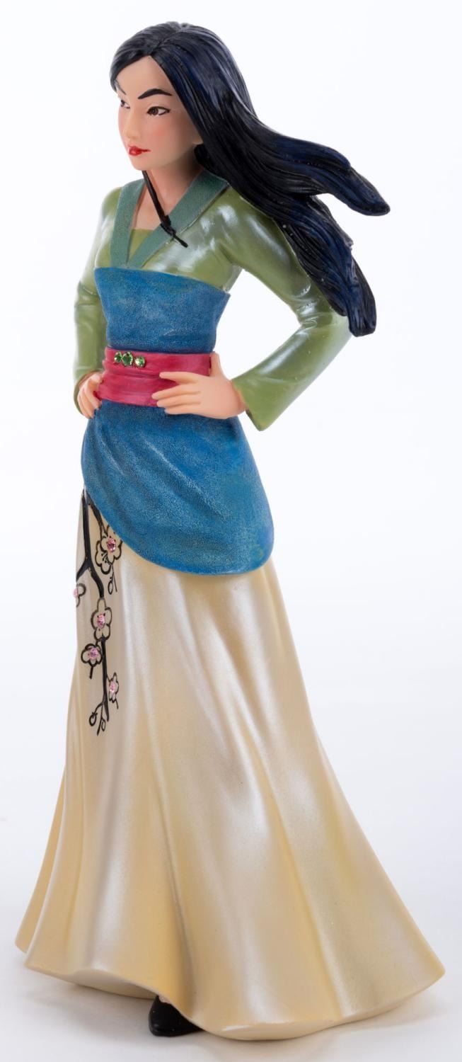 (Enesco, 2020) A Disney Showcase Collection ‘Couture de Force’ figurine of Mulan from Disney’s animated film of the same name. Measuring 4" x 3.25" and 8" tall, the resin figurine is in fine condition and comes with the original 5.75" x 4.5" x 9.5" box.