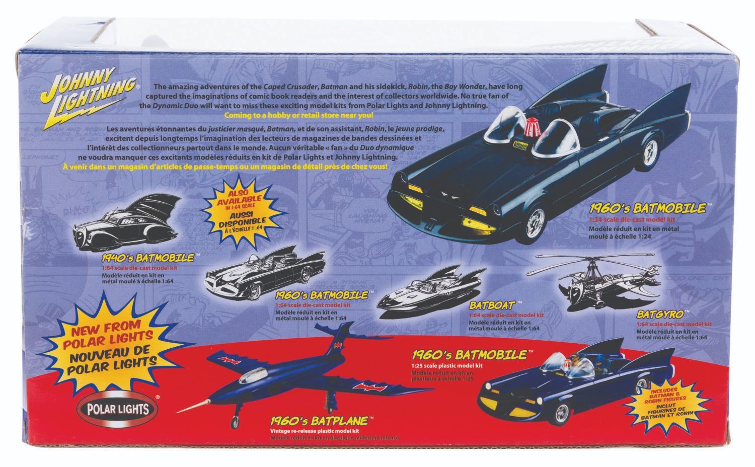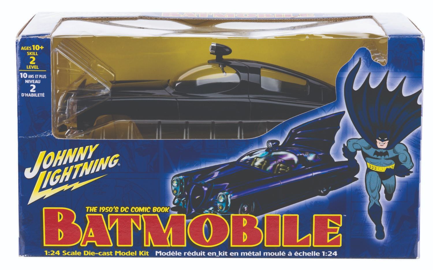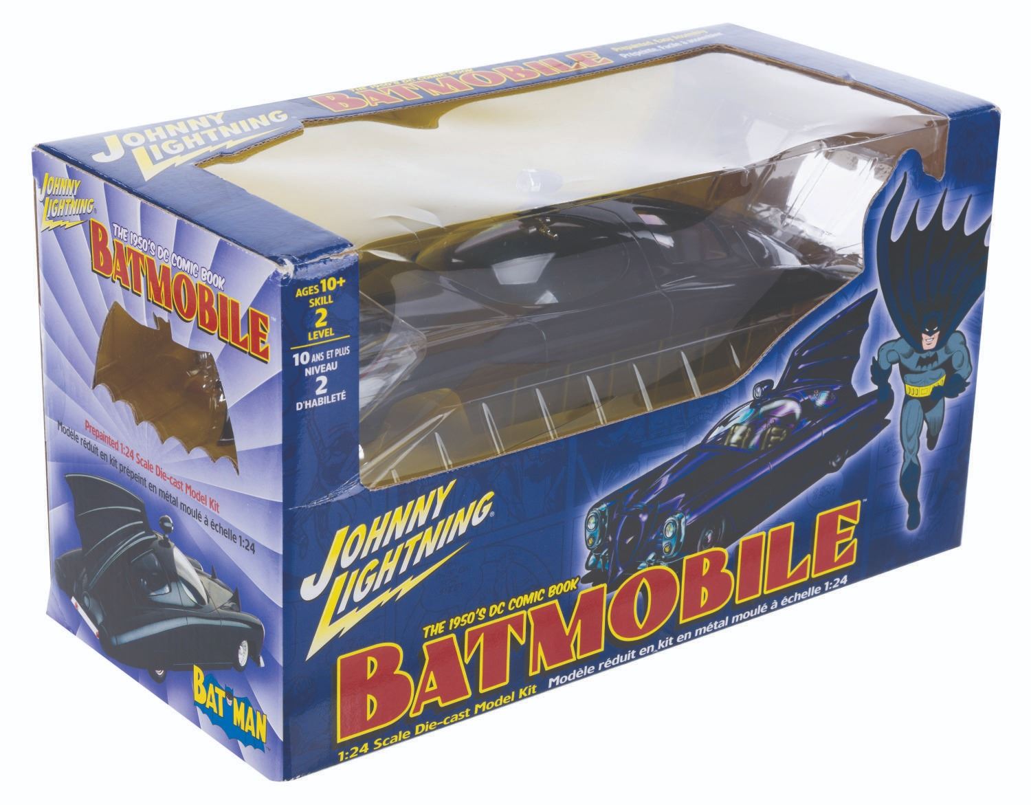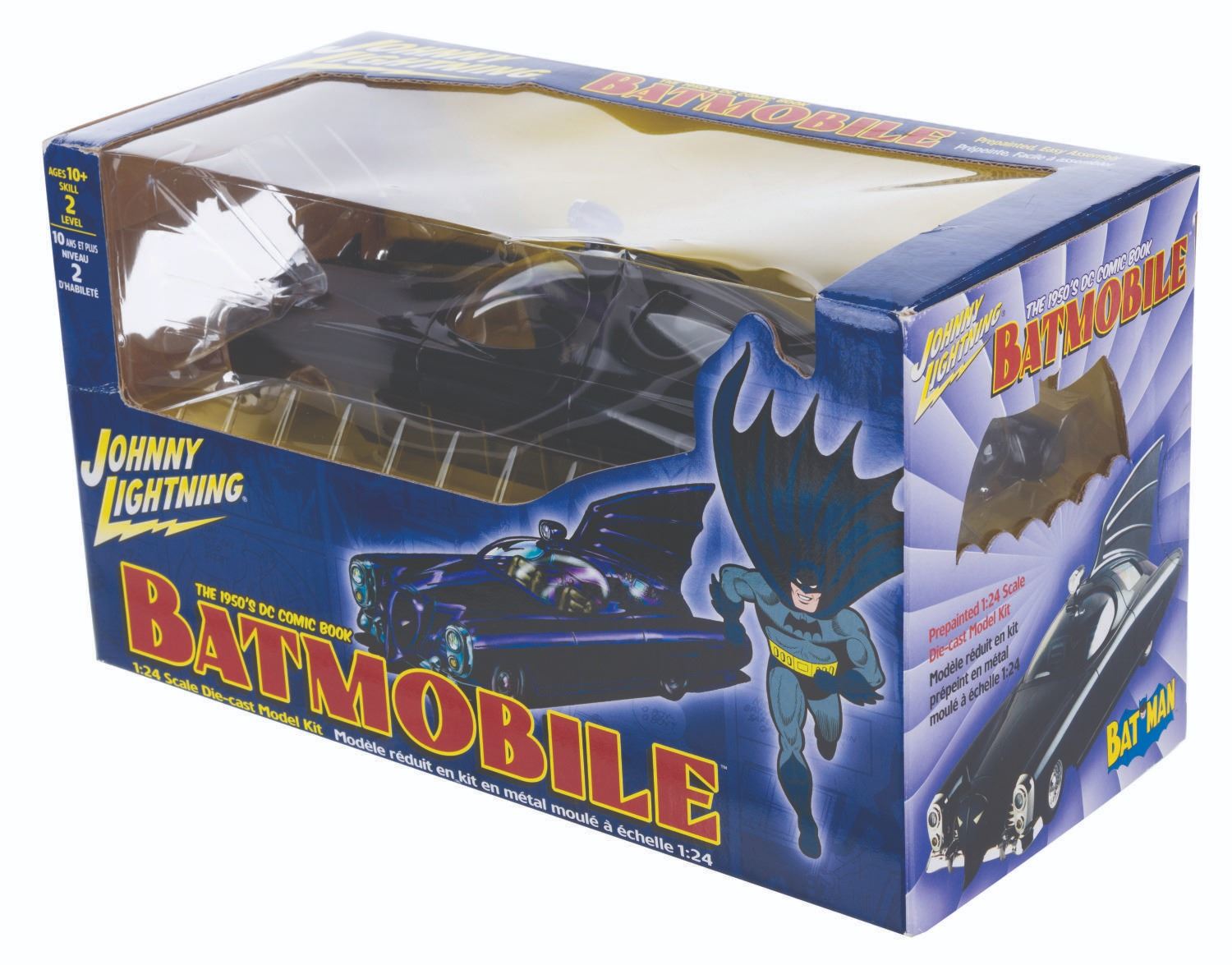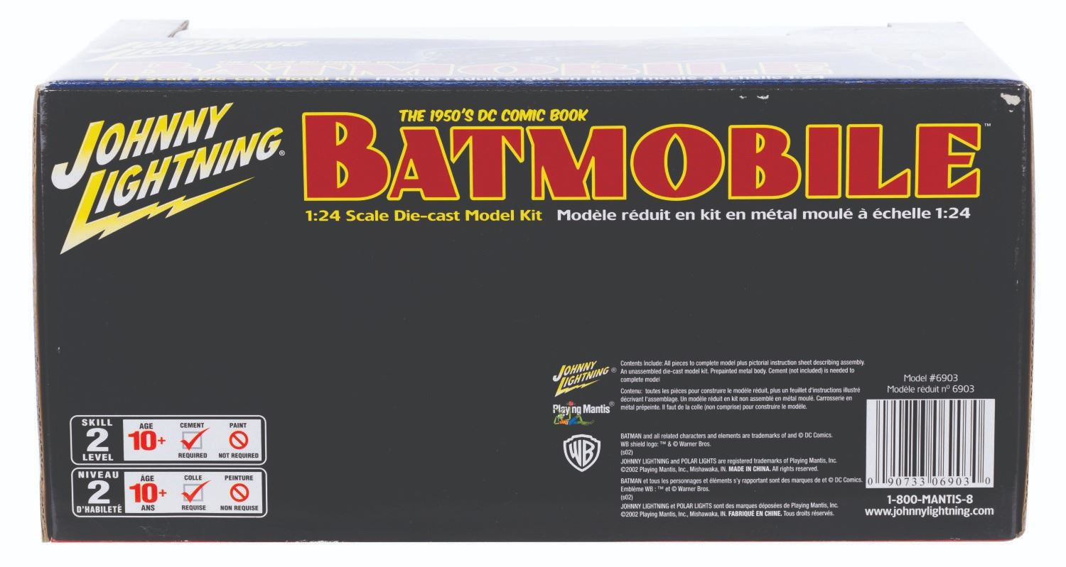 (Johnny Lightning, 2002) A 1:24 scale die-cast model kit of the 1950s DC Comic Book Batmobile in the box. Measuring 11.5” x 6.5” x 5.5” sealed, the model kit is in fine condition with light wear and creasing to the box.