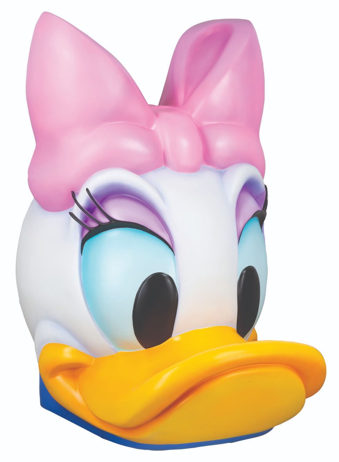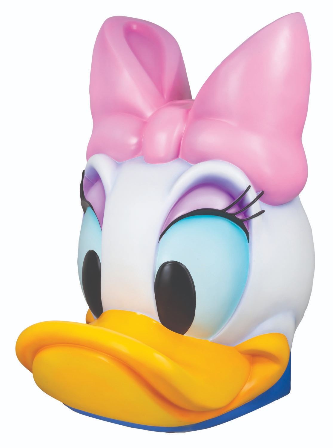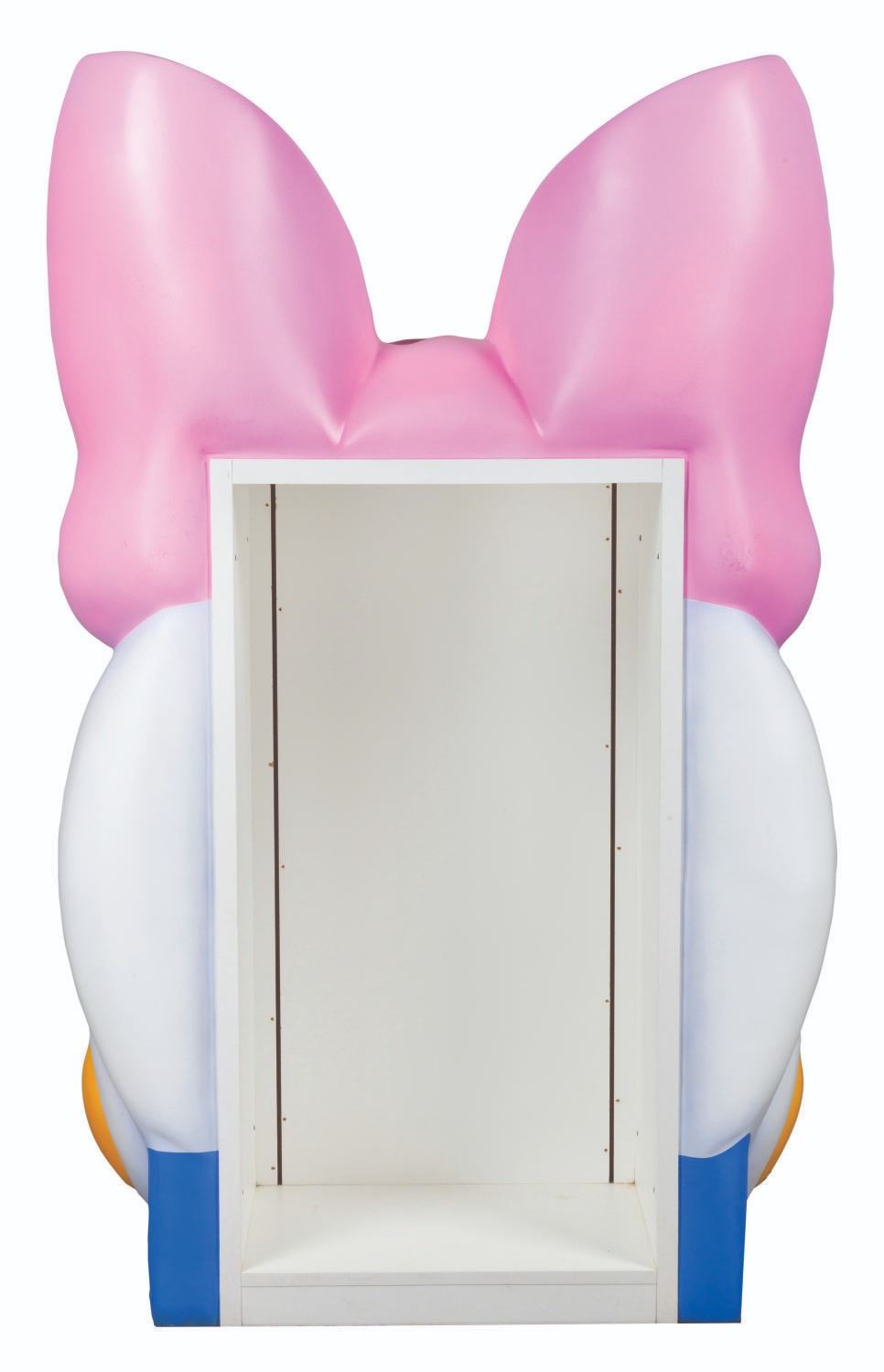 (Disney, 2005-2007) A gigantic merchandise display in the shape of Daisy Duck's Head, created by Tivoli Too for the Disney Store. Manufactured during the short period when the fondly-remembered chain of stores was owned by The Children's Place, Daisy has space on the reverse for shelving to be installed. With its combination of Disney whimsy and storage capabilities, this large Daisy is an excellent addition to any Disney collector's home. Measuring 40" x 43" x 68" tall, the figure is in very good condition with light soiling from storage and wear to the shelving area from a previous configuration. Due to size and weight, special shipping arrangements are required. Please inquire before bidding.