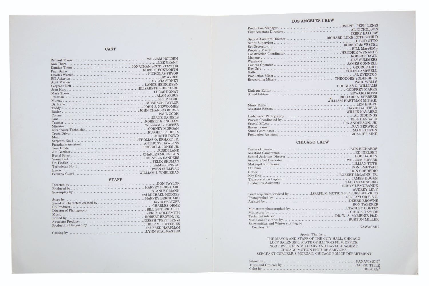 (20th Century Fox, 1978) A Premiere Program for Damien Omen II. Measuring 8.5"x11", the program is in good condition, with light wear from handling.