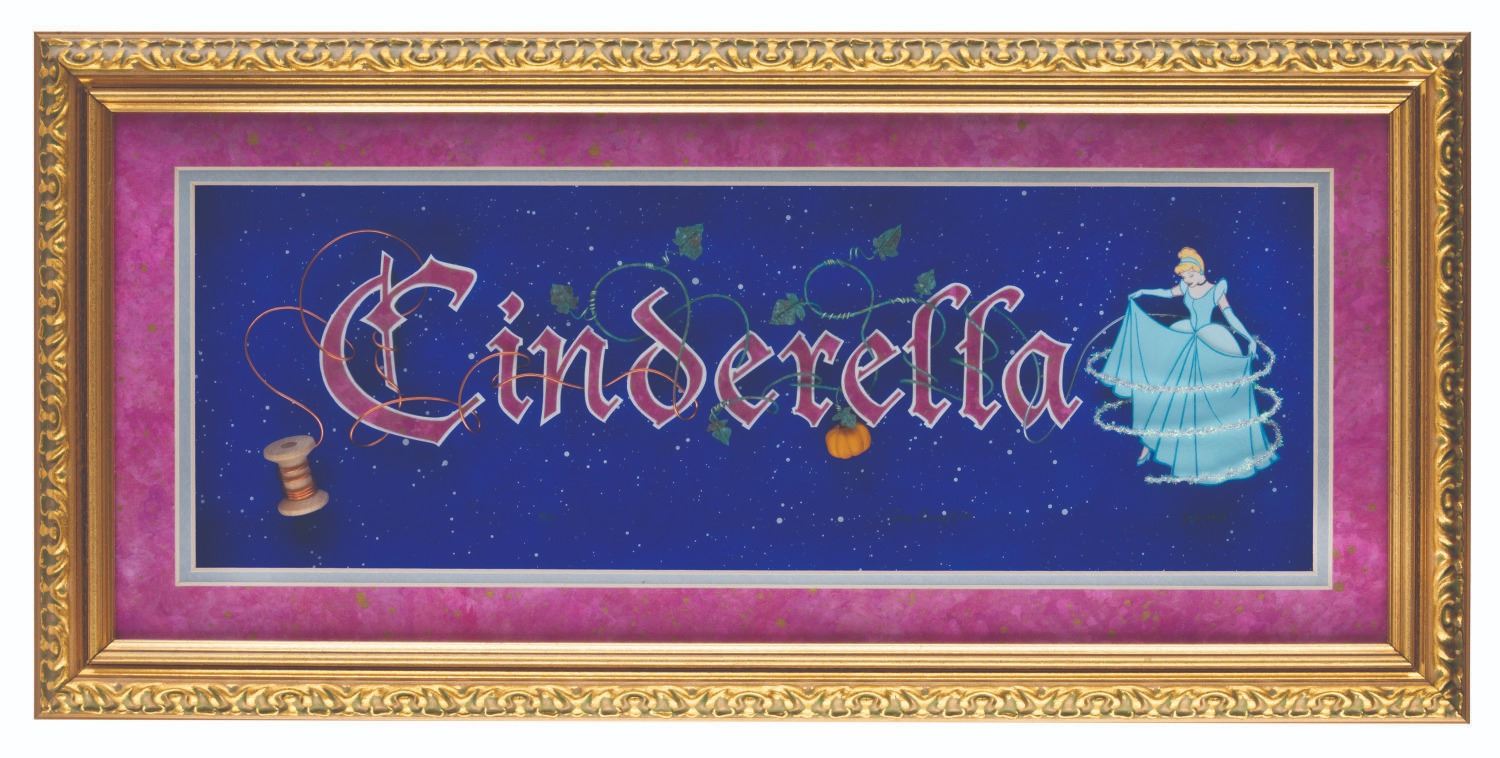 (Disneyland, 2000) A very rare dimensional art piece by mixed-media artist Dave Avanzino, created for"Cinderella's" 50th Anniversary Celebration at Disneyland. This piece is one in an edition of only five, an exceptionally scarce and fantastic piece of "Cinderella" art, originally sold at The Disney Gallery. With a visible window of 6.5" x 18.75" in an 11.75" x 24.25" framed matte, the piece is in fine condition, while the frame is in very good condition with light wear.