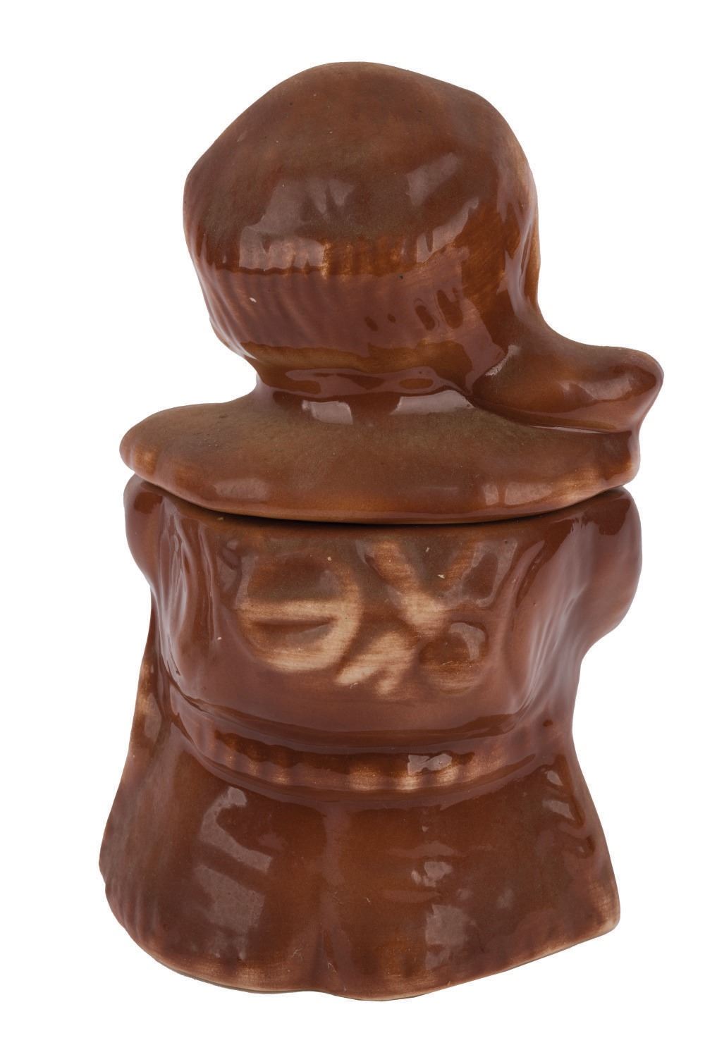 (Brush McCoy, 1950s) A Davy Crockett cookie jar. Measuring 10"x7", the cookie jar is in fine condition, with very light wear typical of use.
