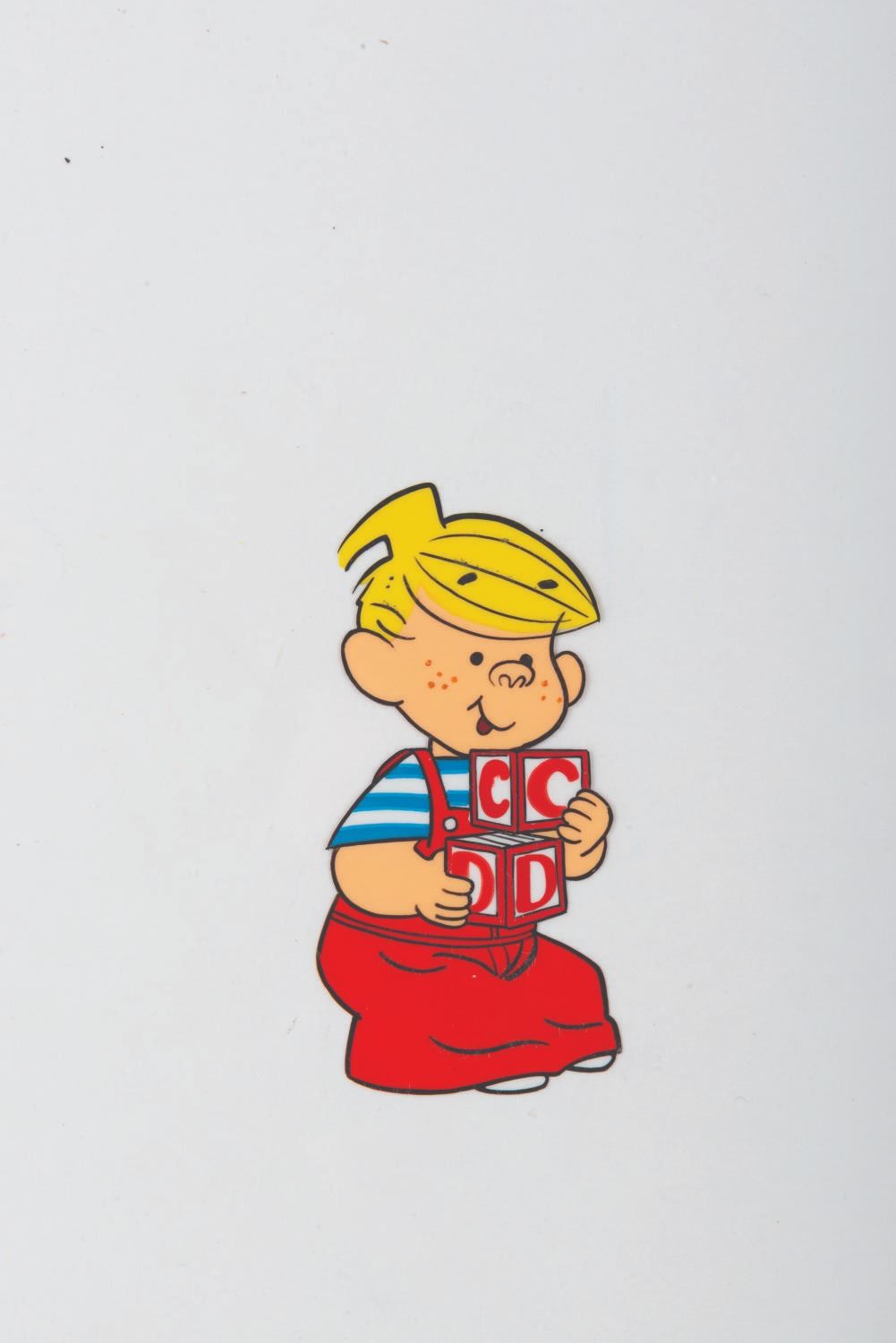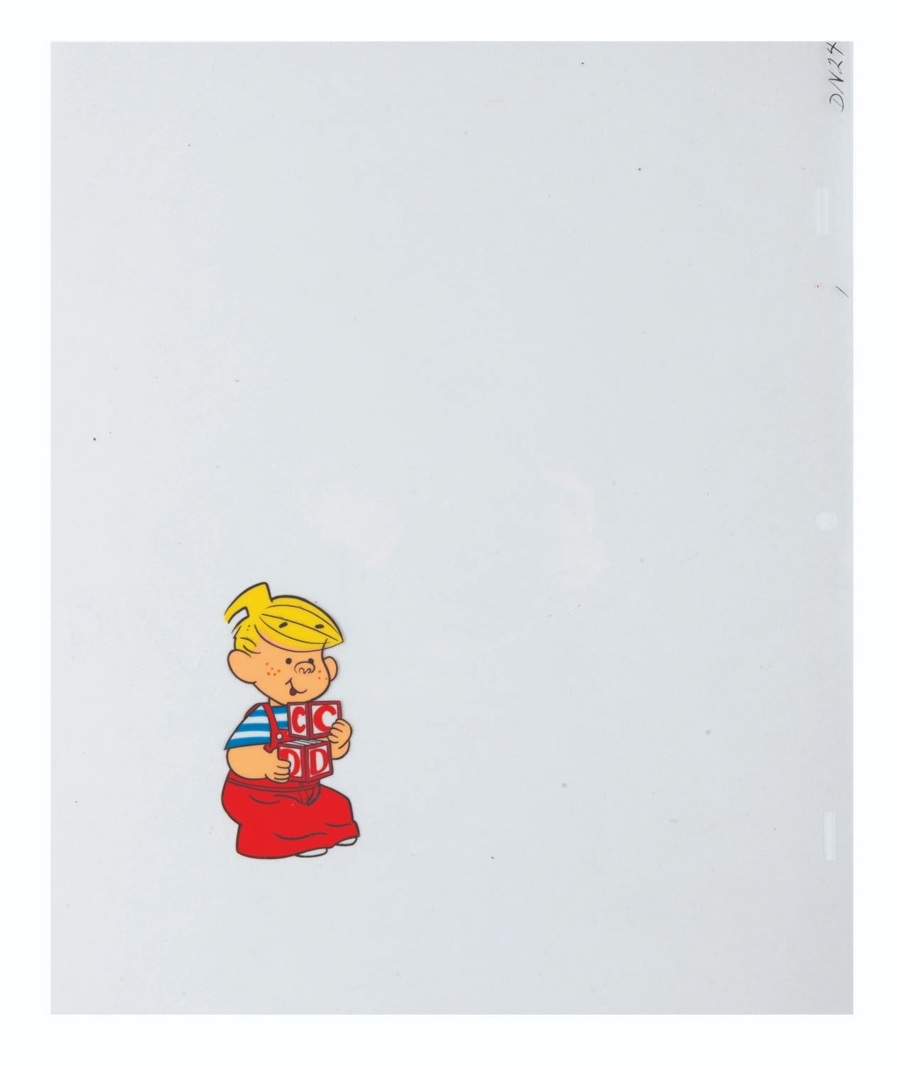 (DiC, 1986) An original production cel of Dennis from the "Dennis the Menace " animated series. With a character size of 3.5 " x 1.75 ", the 10.5 " x 12.5 " cel is in fine production-used condition.