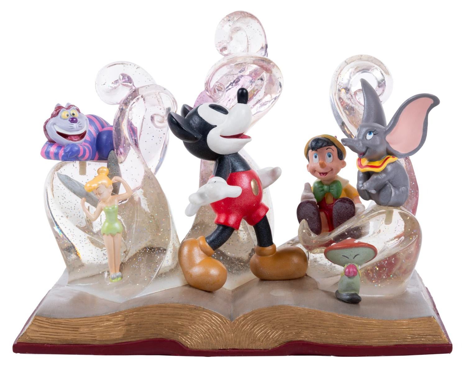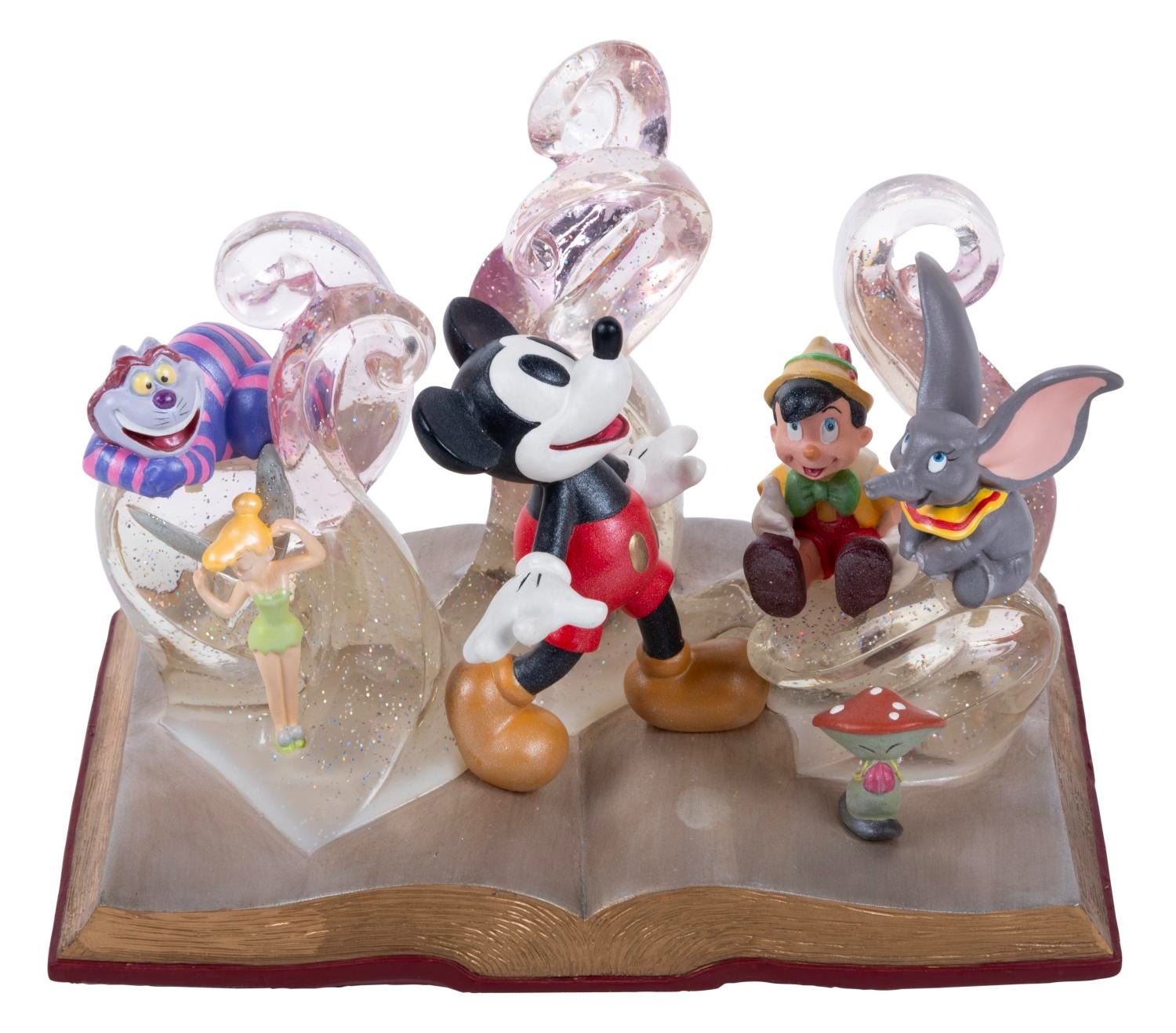 (Disney, 1998) A Disney: 75 Years of Love and Laughter statue released for the anniversary of The Walt Disney Company. The statue celebrates 75 years with Disney characters like Dumbo, Pinocchio, the Cheshire Cat, Tinker Bell, and Mickey Mouse. Measuring 5" tall and 6.75" x 4", the resin figure with the original tag is in fine condition in the box.