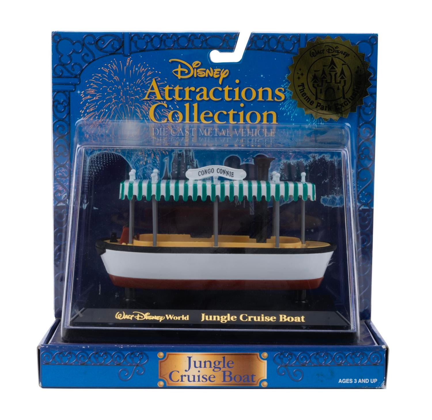 (Disney Parks, 2000s) A Walt Disney Theme Park Exclusive Disney Attractions Walt Disney World Jungle Cruise Boat toy. Measuring 5” long and 3” tall this die-cast metal Congo Connie vehicle toy comes sealed within its original 7.5” x 7.5” and 3.5” deep packaging and is in a fine condition.