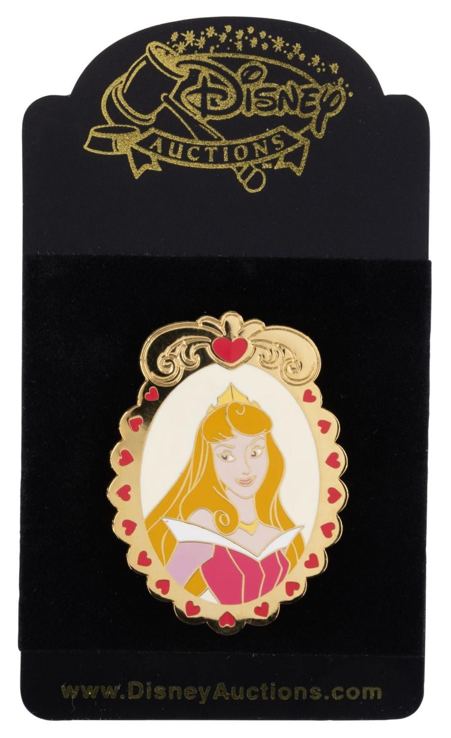 (Disney, 2003) A Disney Auctions Princess Cameo Series pin of Aurora released in a limited edition of 250. Measuring 1.5" x 2" on its original 2.5" x 4.5" backing card, the pin is in fine condition.