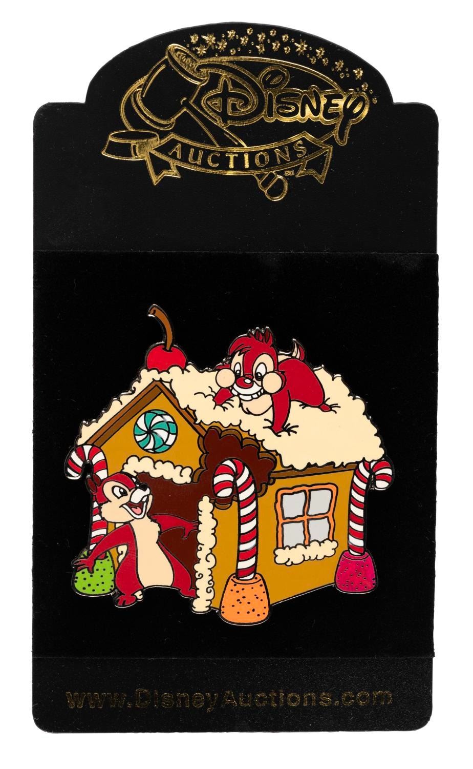 (Disney, 2003) A Disney Auctions Chip & Dale Gingerbread House pin. Released in a limited edition of 1000, the pin measures 1.75” x 2” and is in fine condition, on the original card.