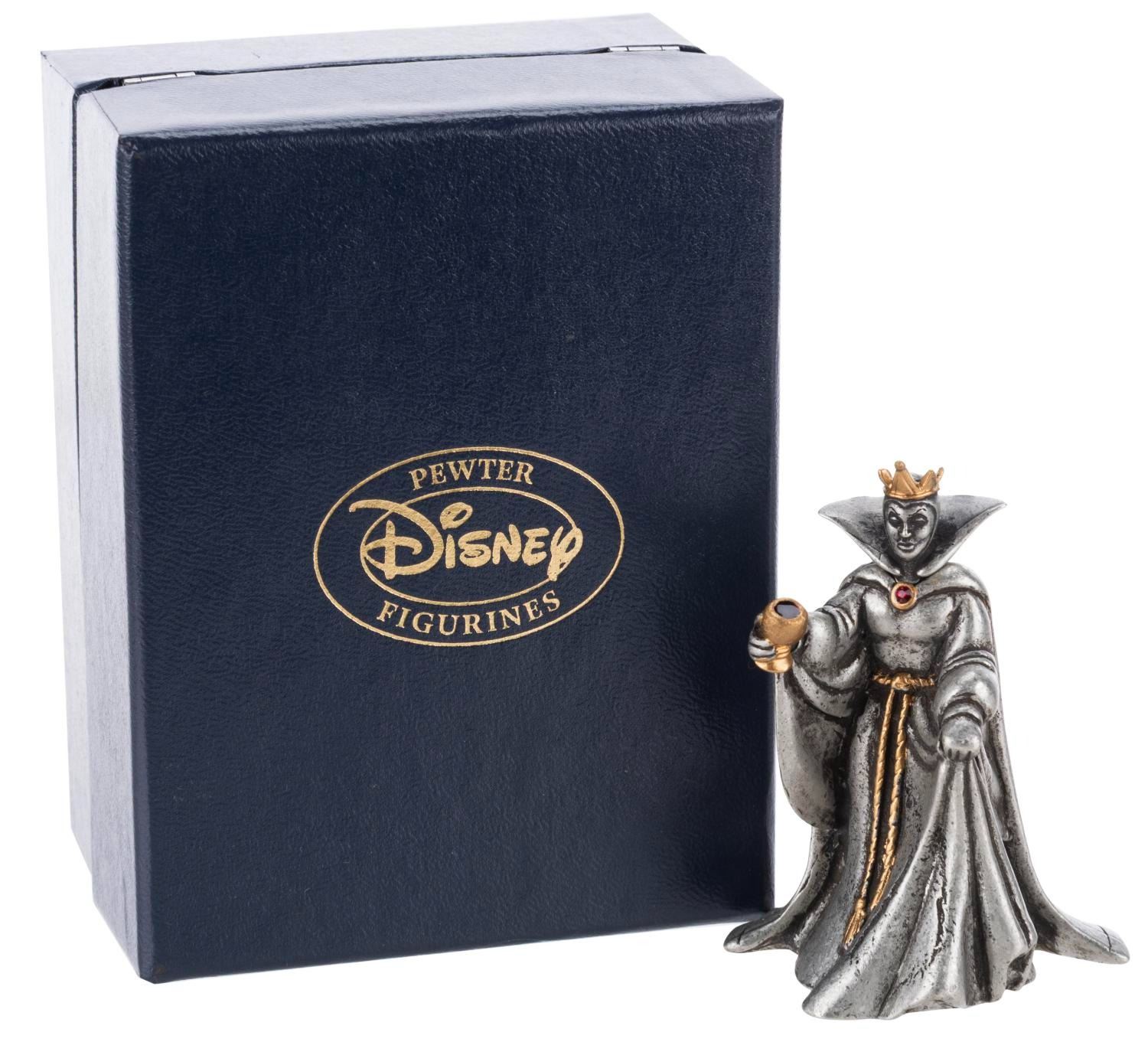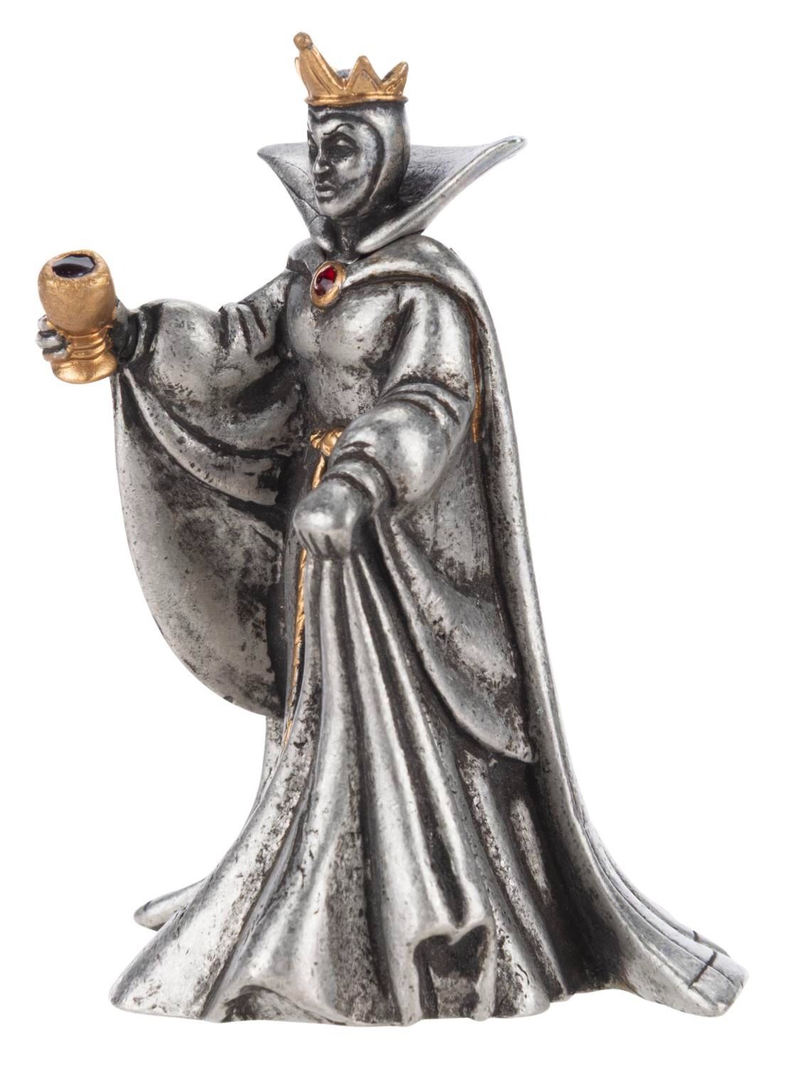 (Disney, 1997) A pewter Evil Queen sculpture from the Disney Catalog's Villain Pewter Sculpture Collection, numbered 0710/2000. Measuring 2" x 2" x 2.75" tall, the sculpture comes with the original box and is in very good condition with light wear.
