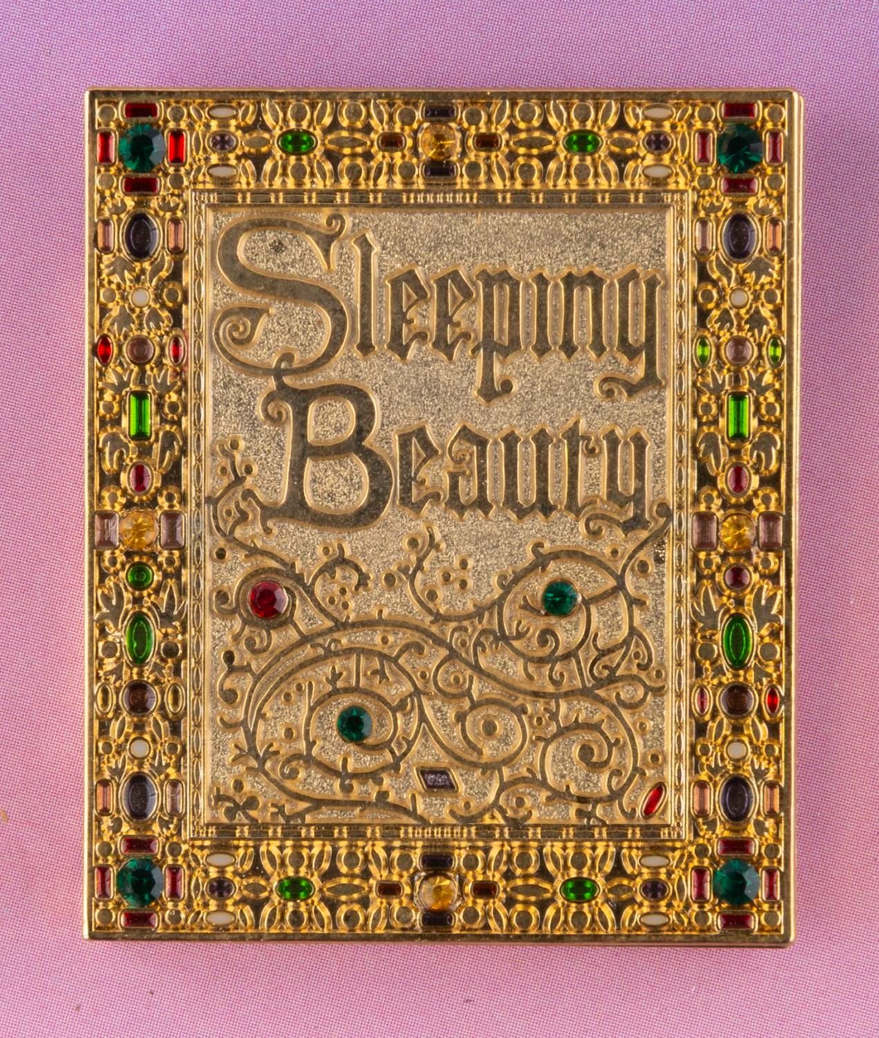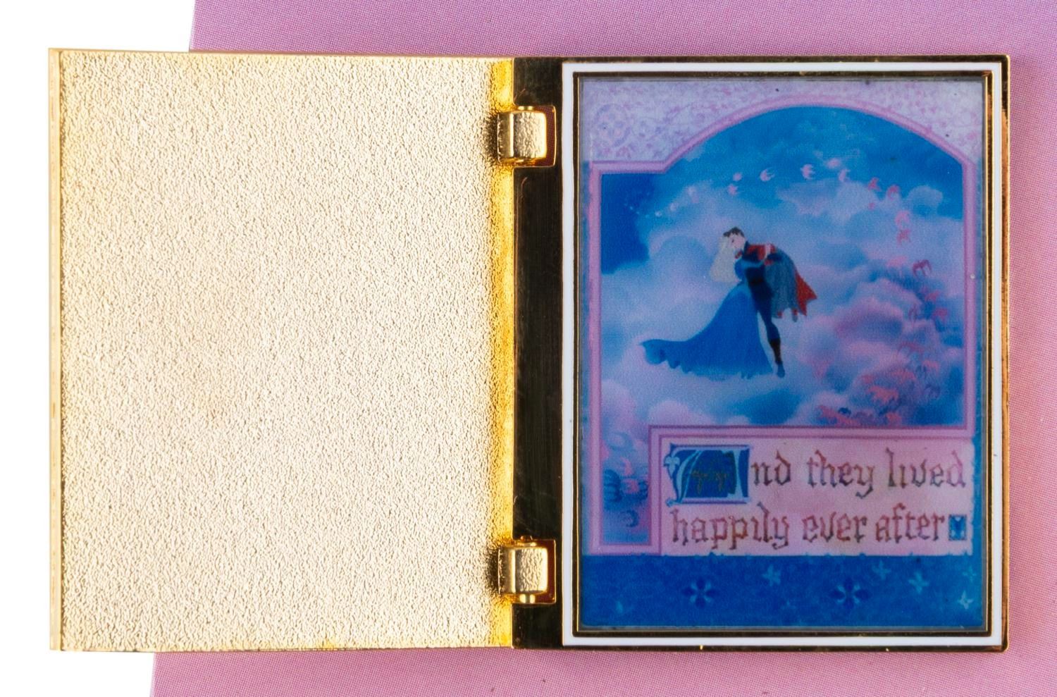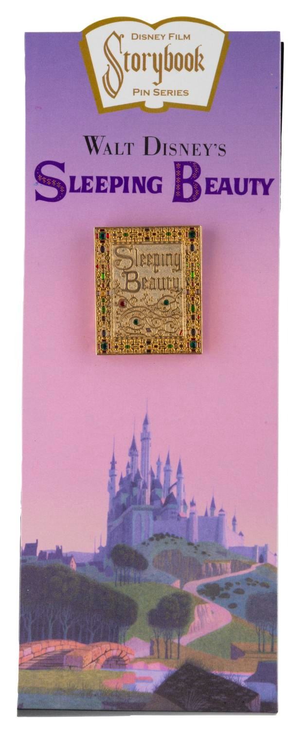 (Disney, 2002) A "Sleeping Beauty" hinged storybook pin, exclusive to the Disney Catalog. Measuring 1.25" x 1.5", the pin is in fine condition on the original card.