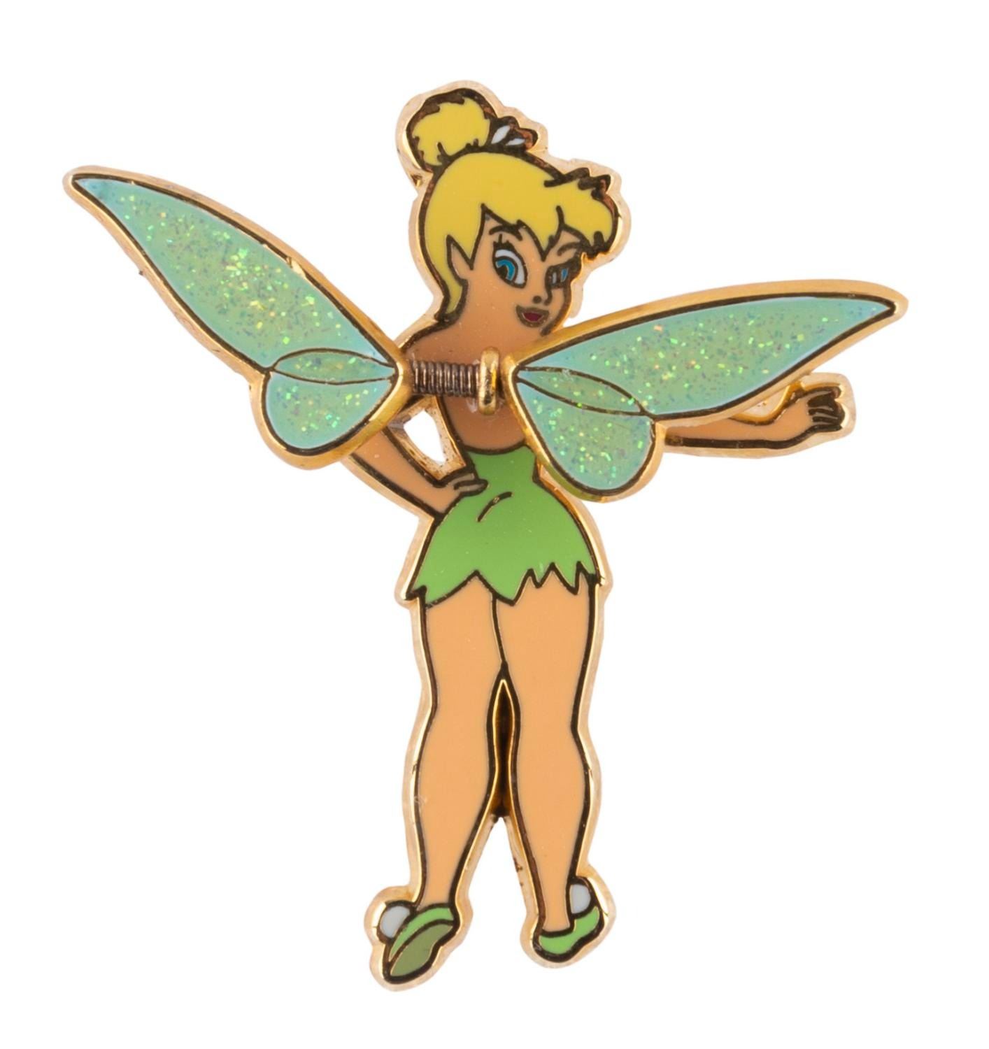 (Disney, 2004) A pin of Tinker Bell with wings on springs, only released as part of a set by the Disney Catalog. Measuring 1.5" x 1.25", the limited edition 1500 pin is in fine condition.
