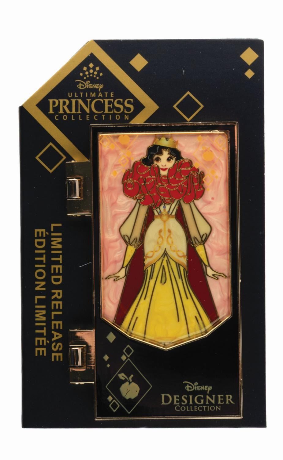 (Disney, 2022) A limited release pin inspired by the Disney Ultimate Princess Snow White doll. The hinged front panel opens to reveal the full Snow White inside, and the card highlights designer Steven Thompson. Measuring 1.75 " x 3 ", the pin is in fine condition on the original card.