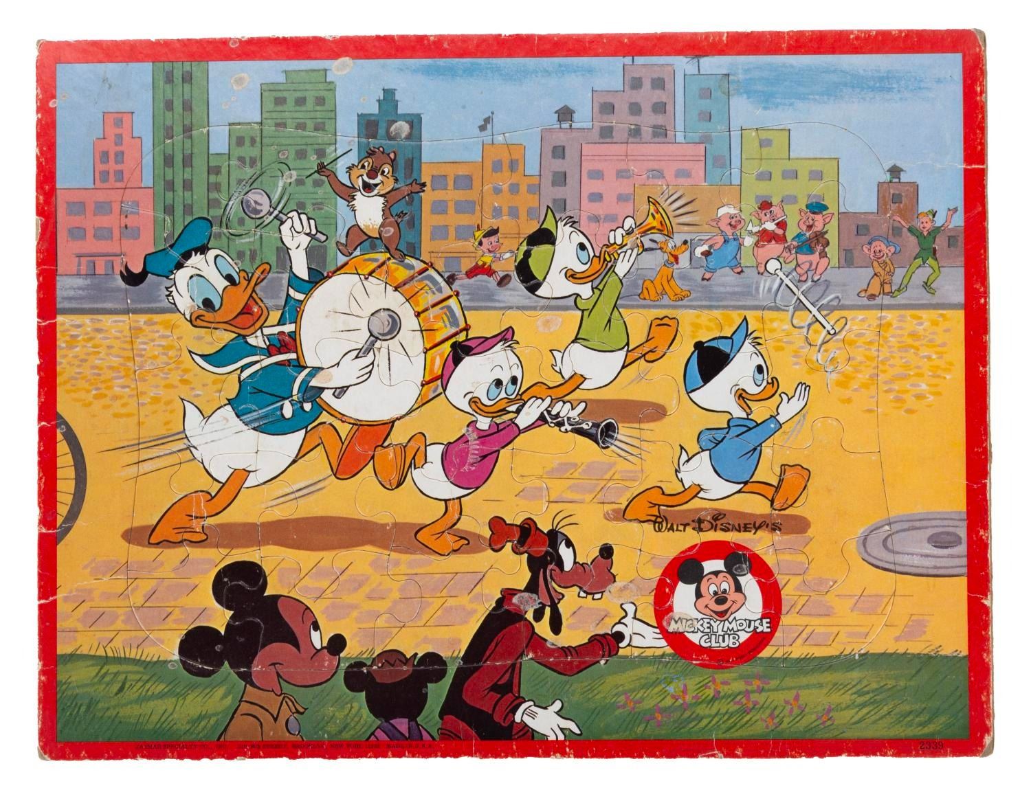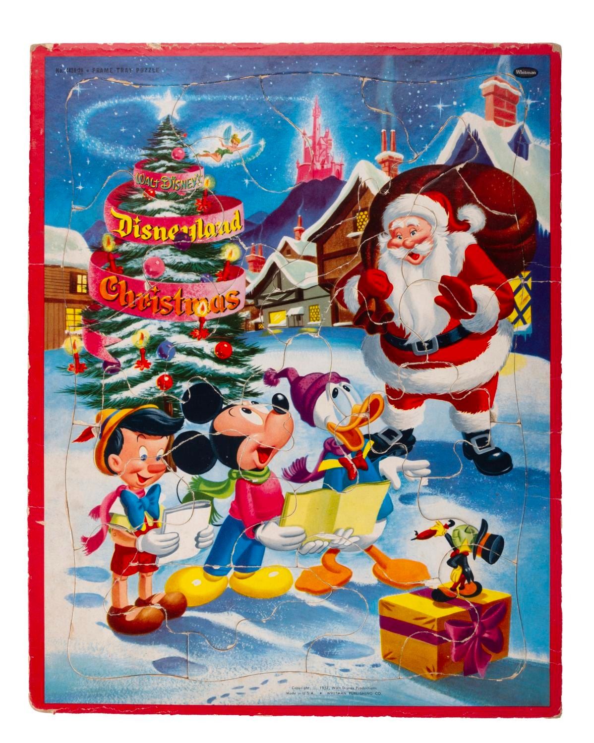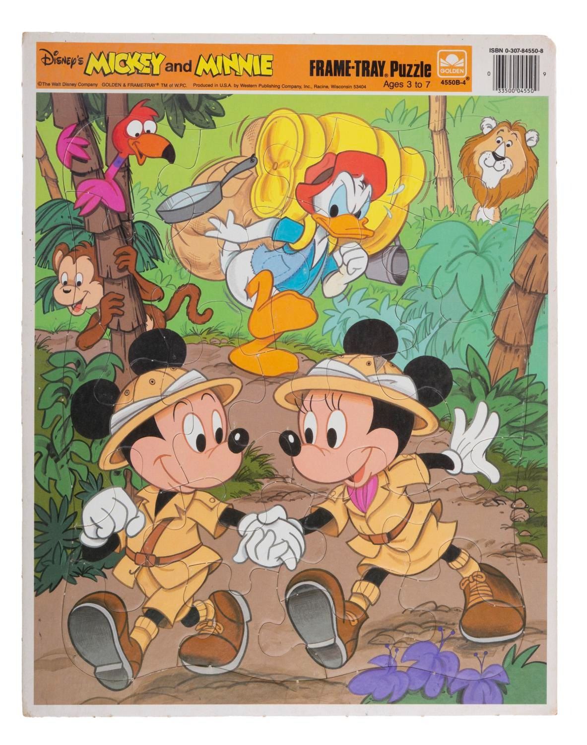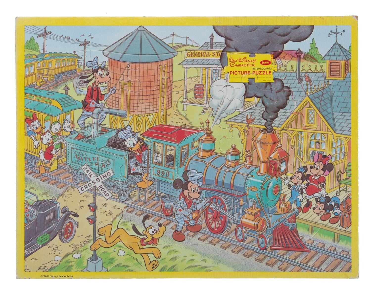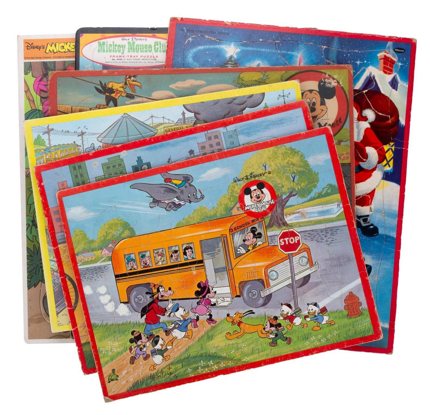 (Golden/Jaymar/Whitman, 1950s-80s) This collection includes seven frame tray puzzles with various Disney characters and themes produced by various manufacturers. Measuring from 11.5"x14.75" to 10"x12.75", each puzzle is in fair-to-good condition with all of its pieces and some wear to each puzzle.