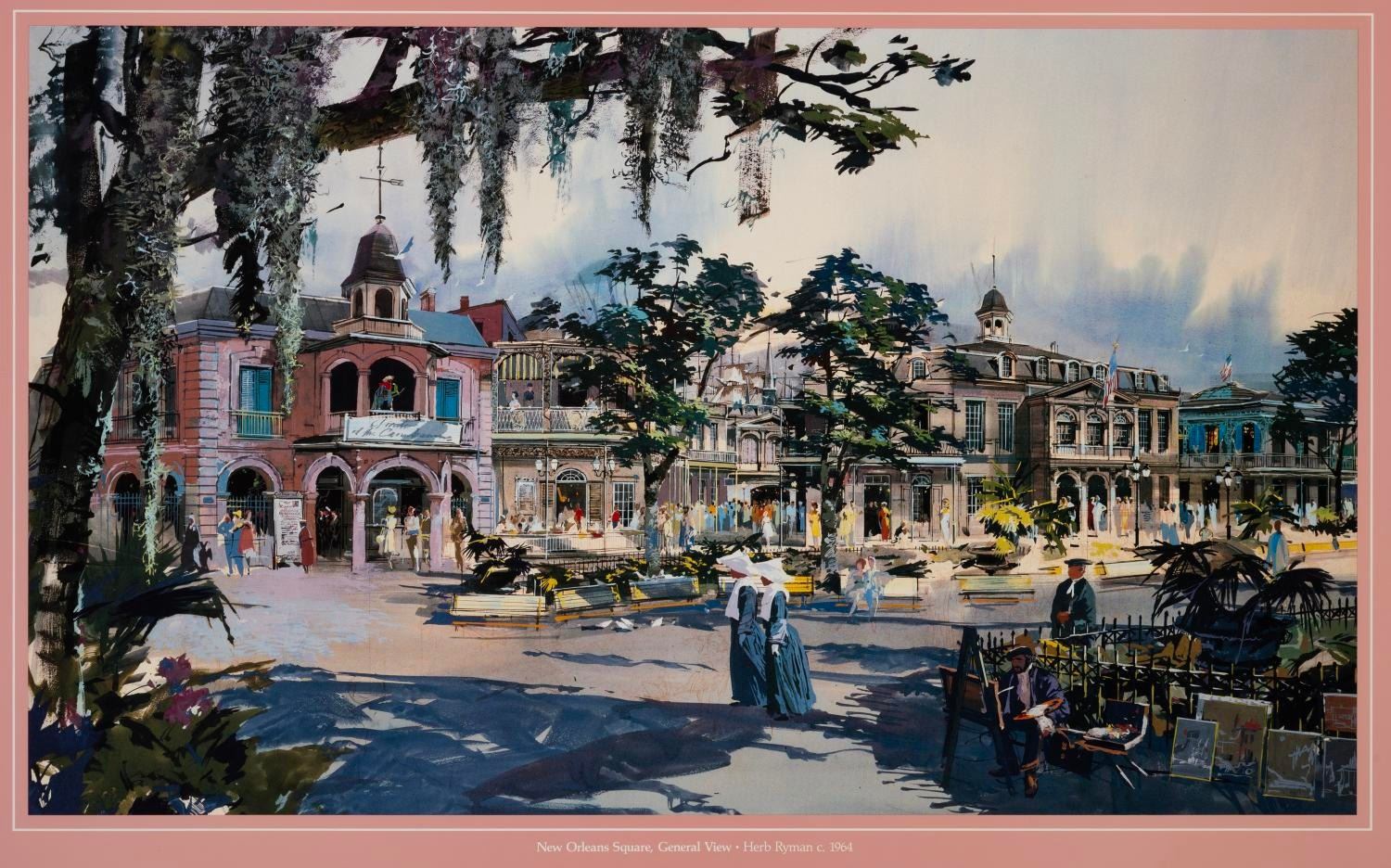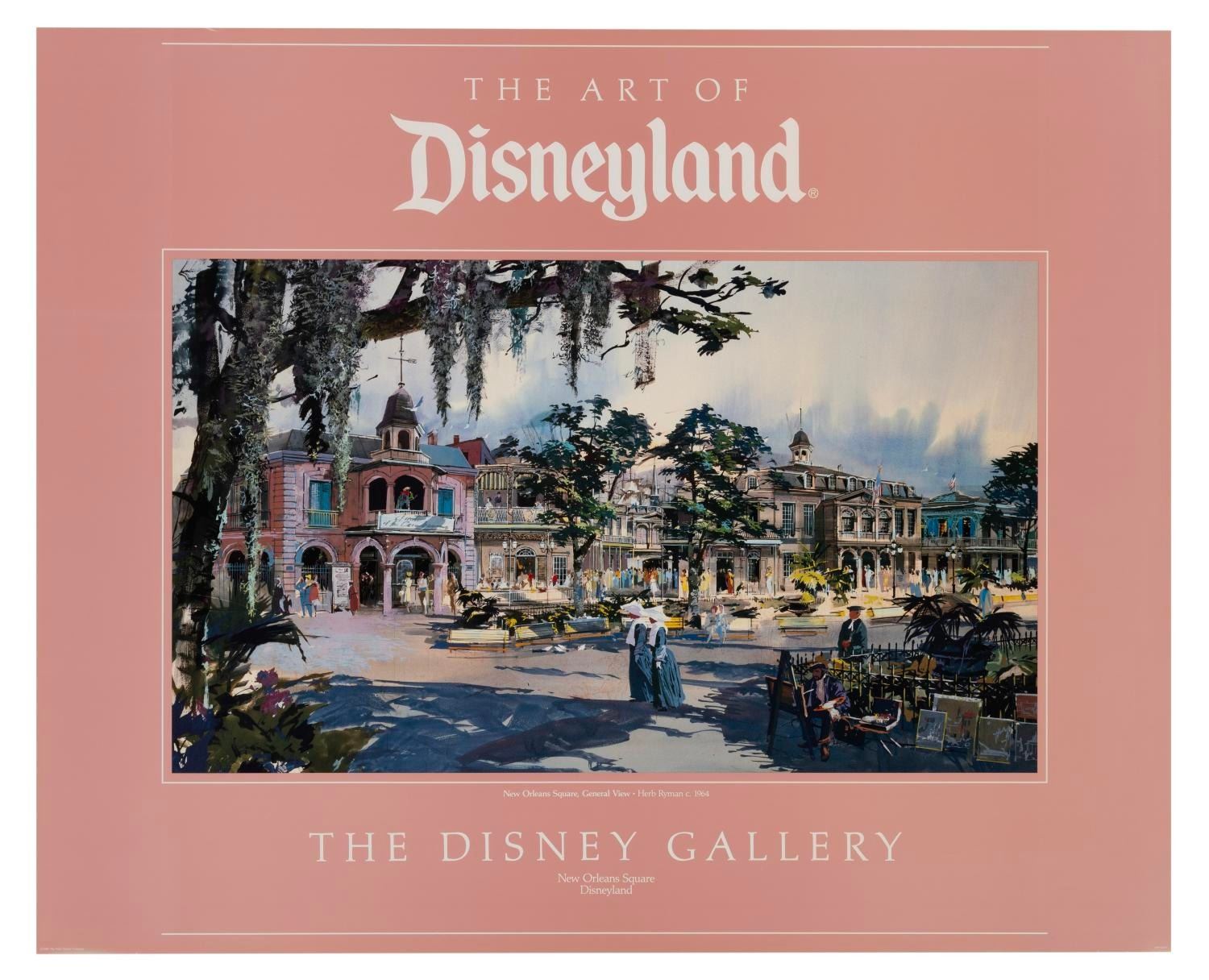 (Disneyland, 1988) A poster for the inaugural exhibition at The Disney Gallery, featuring Herb Ryman's fabulous concept art for New Orleans Square. Measuring 26" x 32", the poster is in very good condition with light wear.