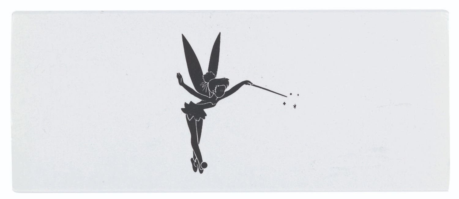 (Disney Gallery, 1990s) A Disney Gallery laser pointer pen that projects an image of Tinker Bell sprinkling pixie dust. The pen's ink and laser pointer functions did not work when tested, requiring service. Measuring 5.25" long with its original 3" x 7" case and leather pouch, the pen is in very good condition with light wear.