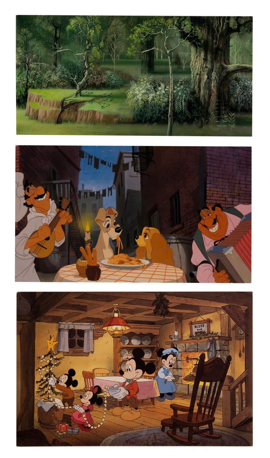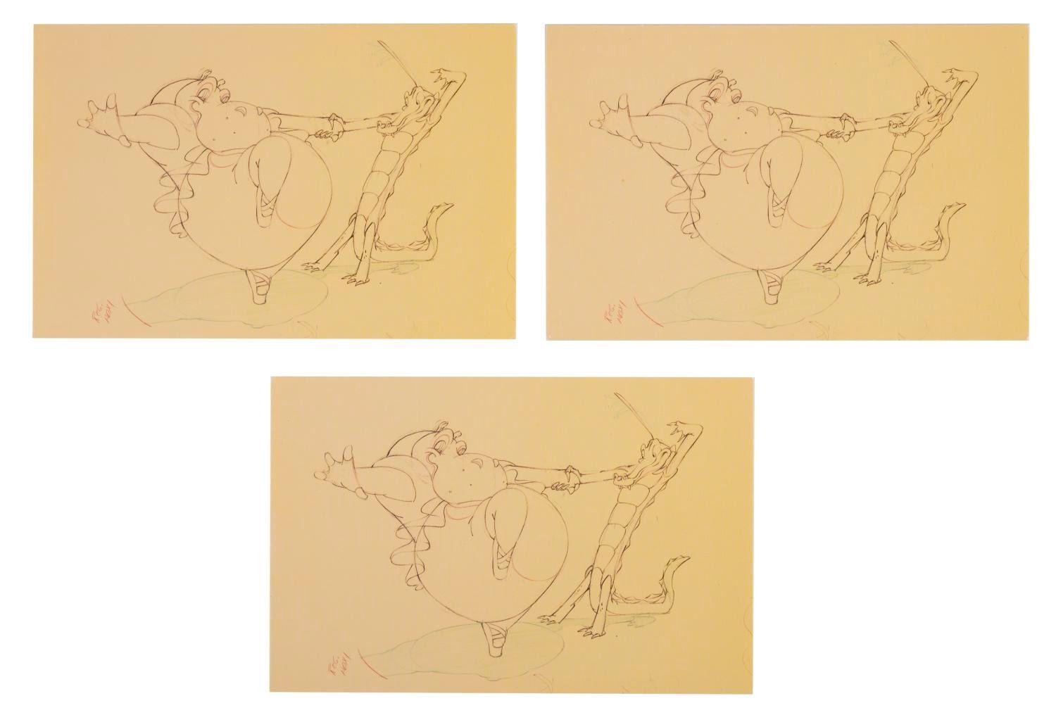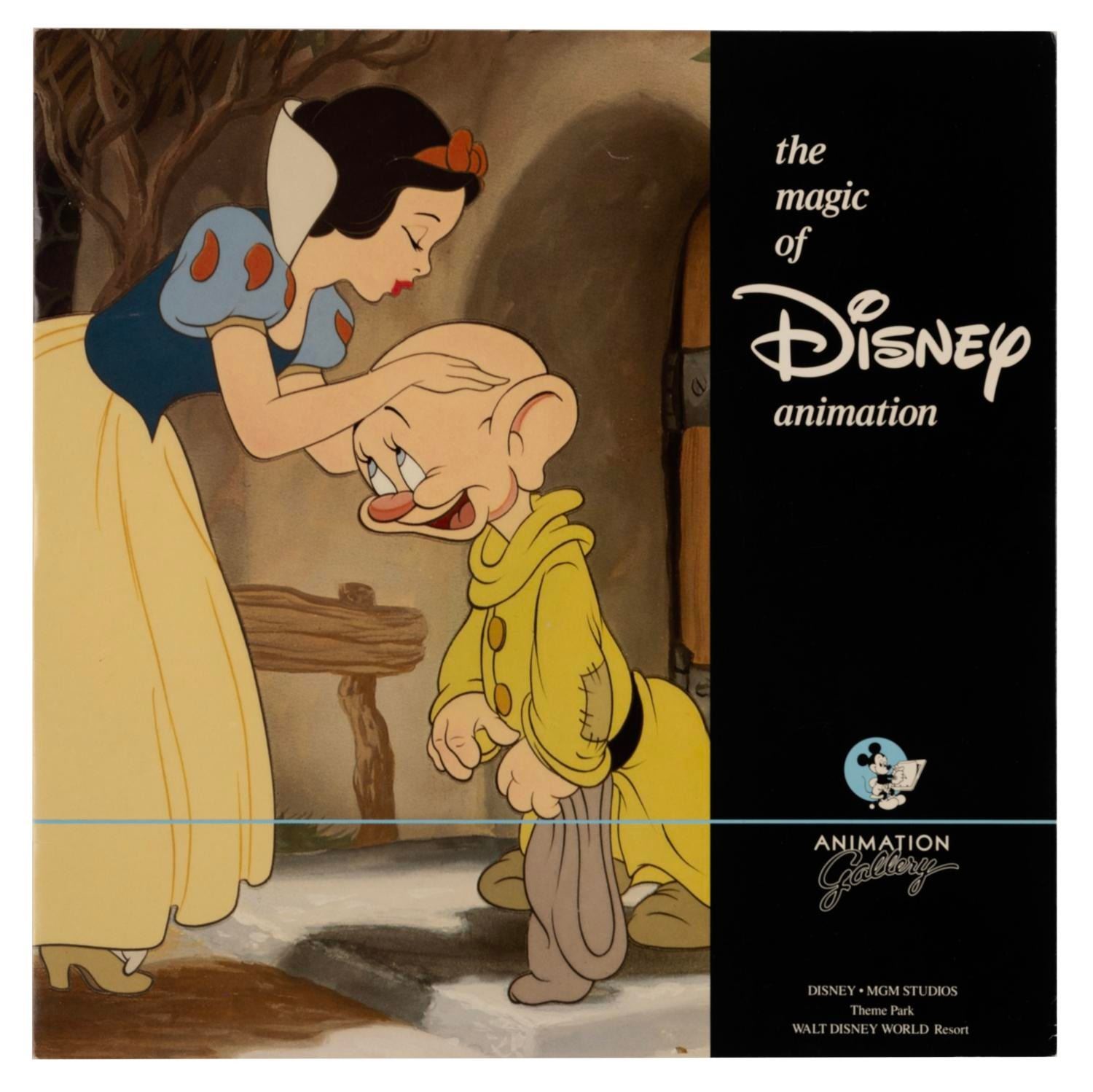(Disney-MGM, 1989) A copy of "The Magic of Disney Animation" brochure commemorating the Disney Animation Collection exhibit inside the Animation Gallery, and ten postcards. Three of the postcards are duplicate images featuring Hyacinth Hippo and Ben Ali Gator. Measuring from 6.75"x3.5" up to 8.5"x8.5", the items are in very good condition with light edge wear and creasing from handling.