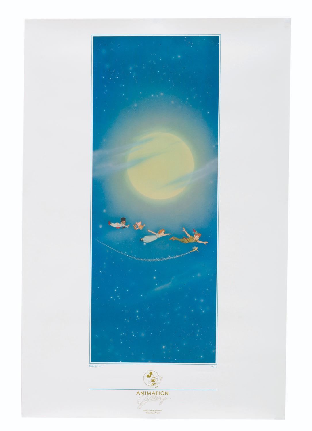 (Disney-MGM Studios, 1990s-2000s) A poster print of a still from "Peter Pan, " originally sold at the Animation Gallery at Disney-MGM Studios. Measuring 24 " x 36 " the poster is in very good condition with minimal edge wear and creasing.