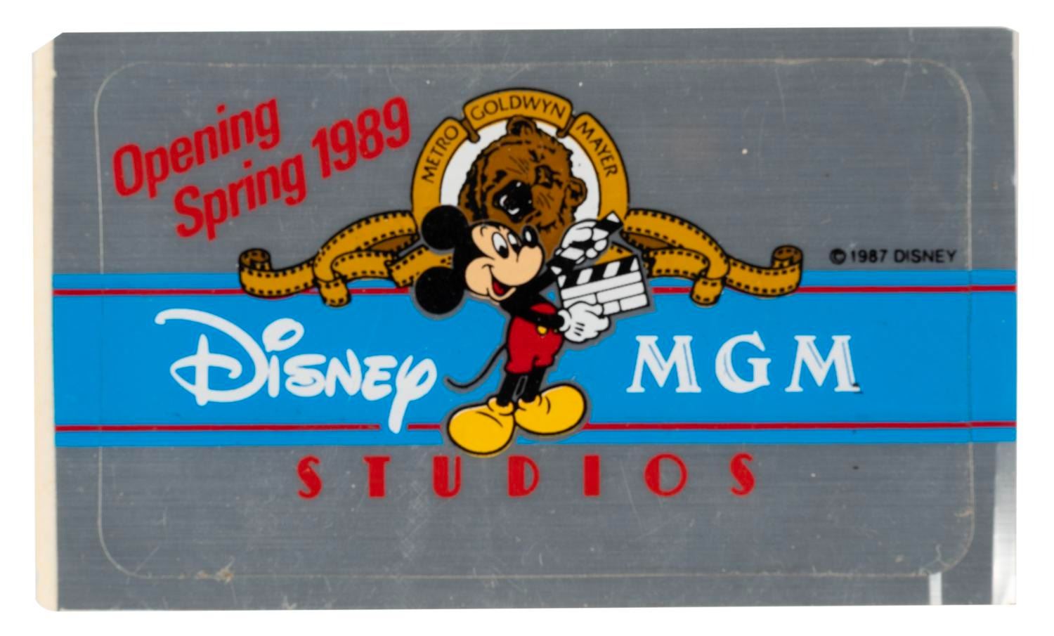 (Disney-MGM Studios, 1987) A very rare pre-opening souvenir sticker for Disney-MGM Studios featuring Mickey with a clapboard. Measuring 2.5" x 4.25", the sticker is in very good condition with wear to the outer border only.