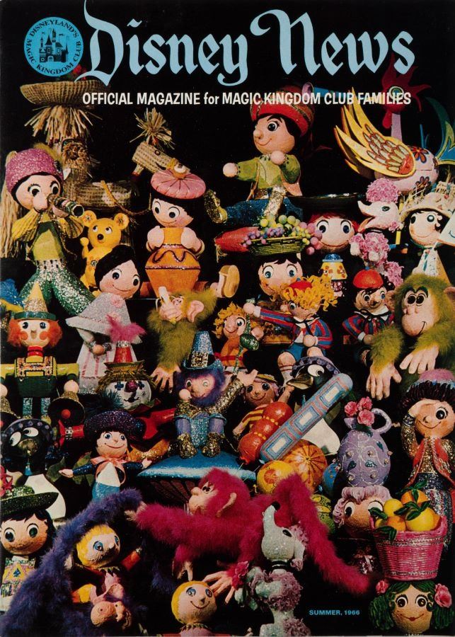 (Disneyland, 1966) A Disney News magazine from the Summer of 1966 with a cover story on It's a Small World. Measuring 8.5” x 11", the 16-page magazine is in very good condition with typical wear from age and handling.