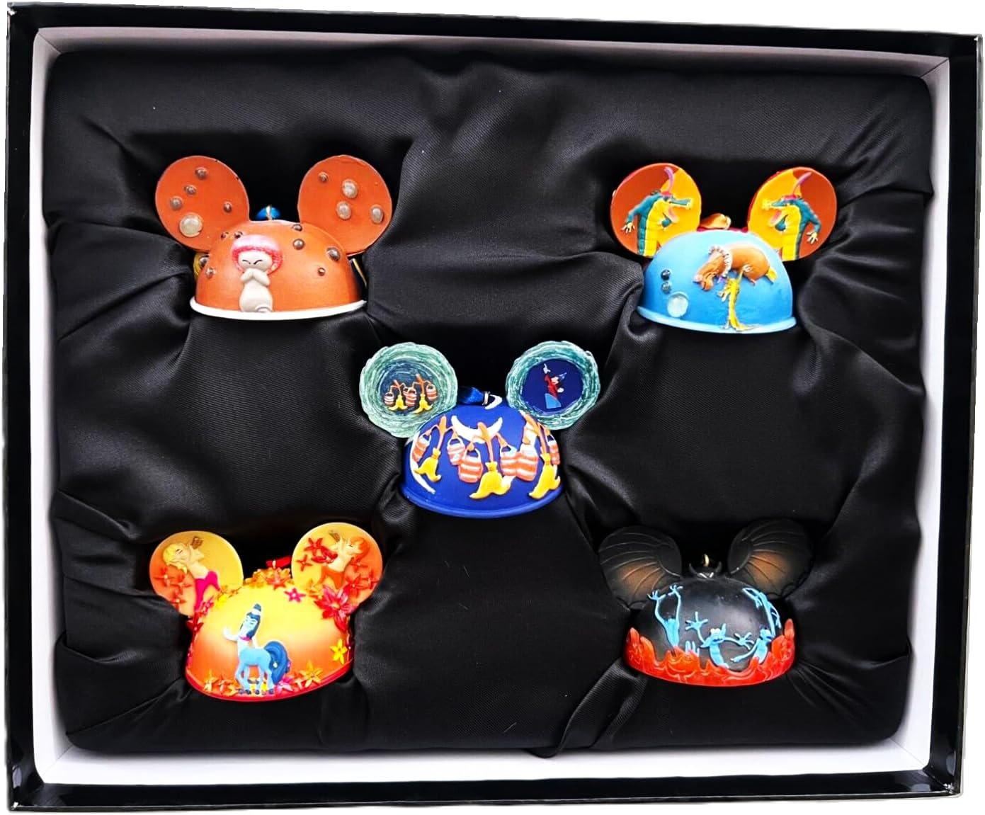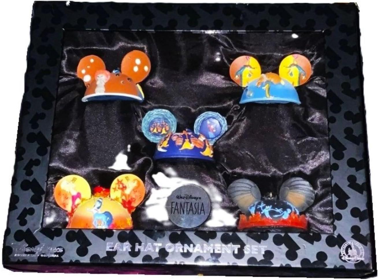 (Disney Parks, 2000s) A Disney Parks five-piece Mouse Ear Hat Christmas ornament set featuring five of the musical segments from “Fantasia.” Each ornament is in fine condition with the original box.