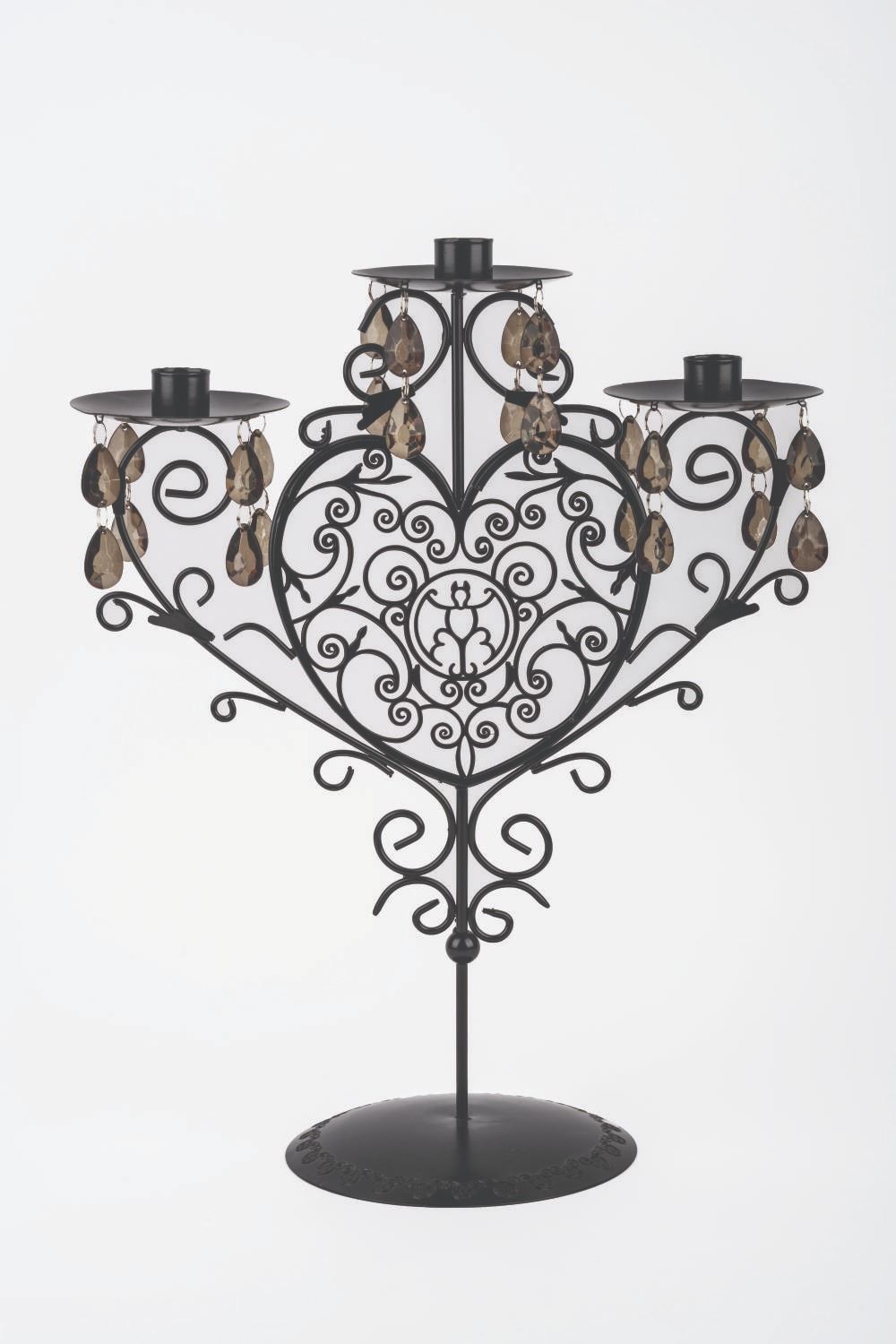 (Disney Parks) A Disney Parks Authentic Haunted Mansion Candelabra. The black metal candle holder features ornate wrought iron with bats, “hidden Mickeys,” and teardrop chandelier gems. Measuring 15.5” tall and 12.5” wide, the piece is in fine condition.