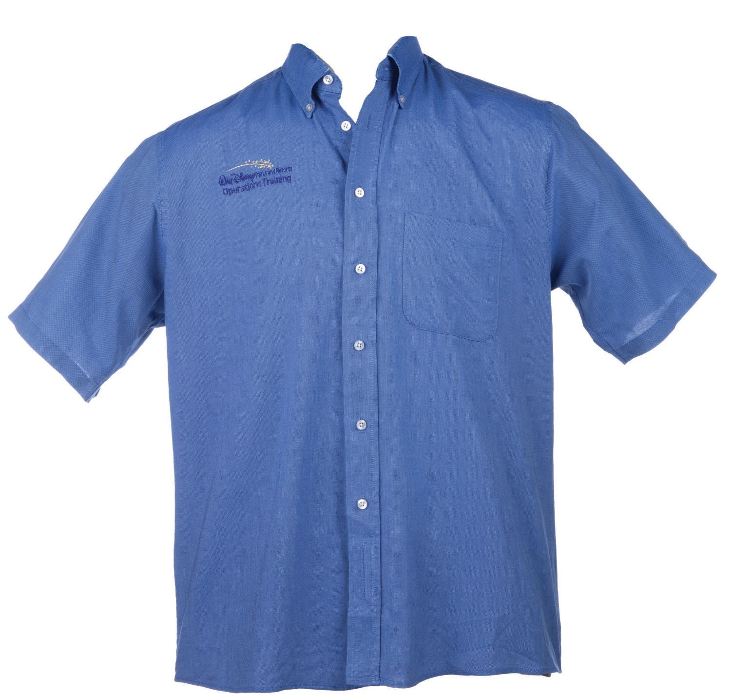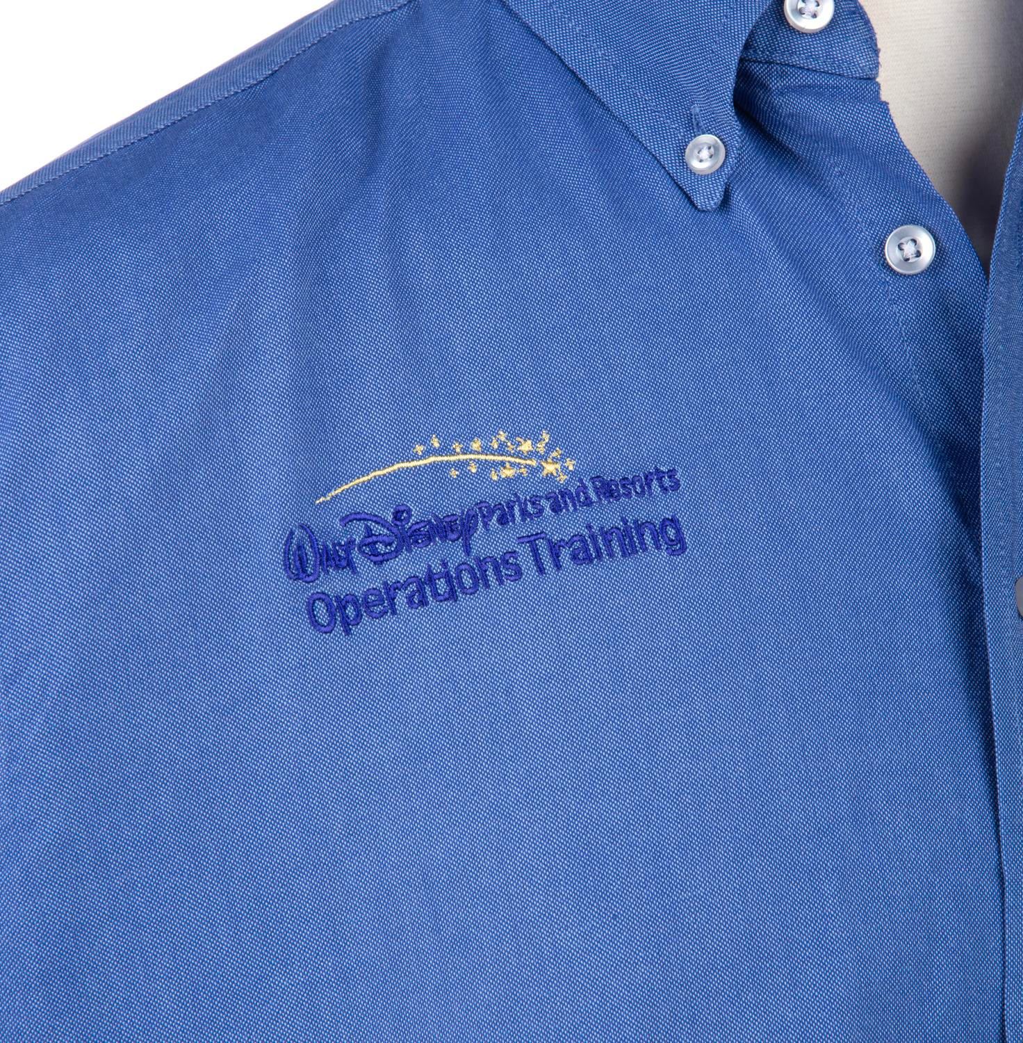 (Walt Disney World, 2010s) A shirt worn by Cast Members involved in Walt Disney Parks and Resorts Operations Training division. The shirt features the embroidered division name and pixie dust. Measuring a Male Size L, the shirt is in good condition with pilling and wear to collar area and wear from Park & Resort use.