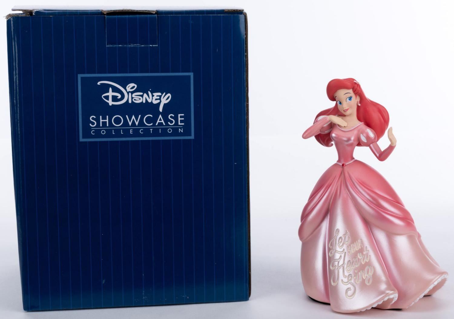 (Enesco, 2022) A 'Disney Princess Expression' series figurine of Ariel from Disney's "The Little Mermaid." The resin figurine features an inscription that reads "Let your heart sing" and was released in 2022 as part of the Disney Showcase Collection. Measuring 4" x 4.75" and 6" tall, the figurine is in fine condition and comes with the original 6.5" x 6" x 8.25" box.