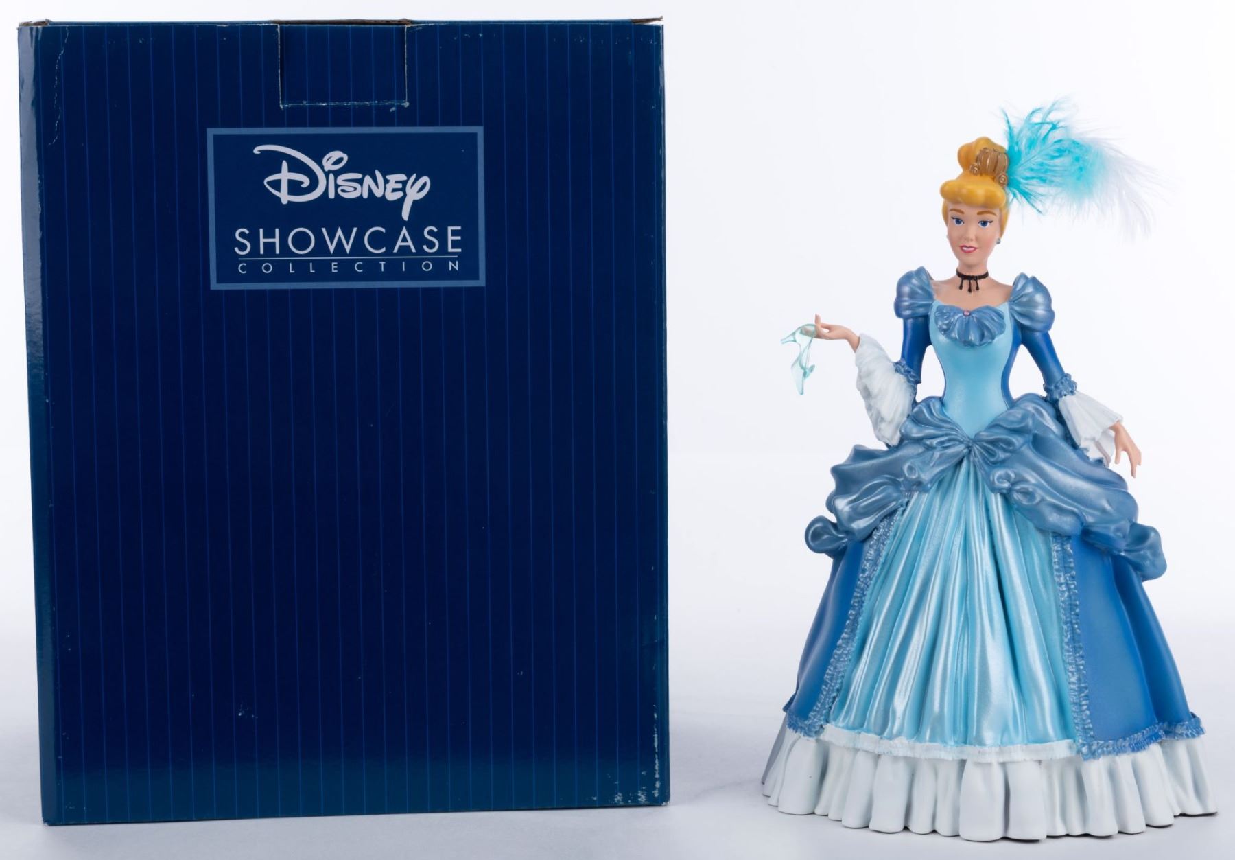 (Enesco, 2022) A Disney Showcase Collection stone resin figurine of Cinderella in a Rococo-style ballgown. Measuring 6" x 4.75" and 8.75" tall, the figurine is in fine condition and comes with the original box.