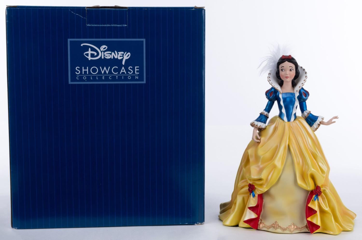 (Enesco, 2022) A Disney Showcase Collection stone resin figurine of Snow White in a Rococo-style ballgown. Measuring 6.5" x 5.25" and 8" tall, the figurine is in fine condition and comes with the original box.
