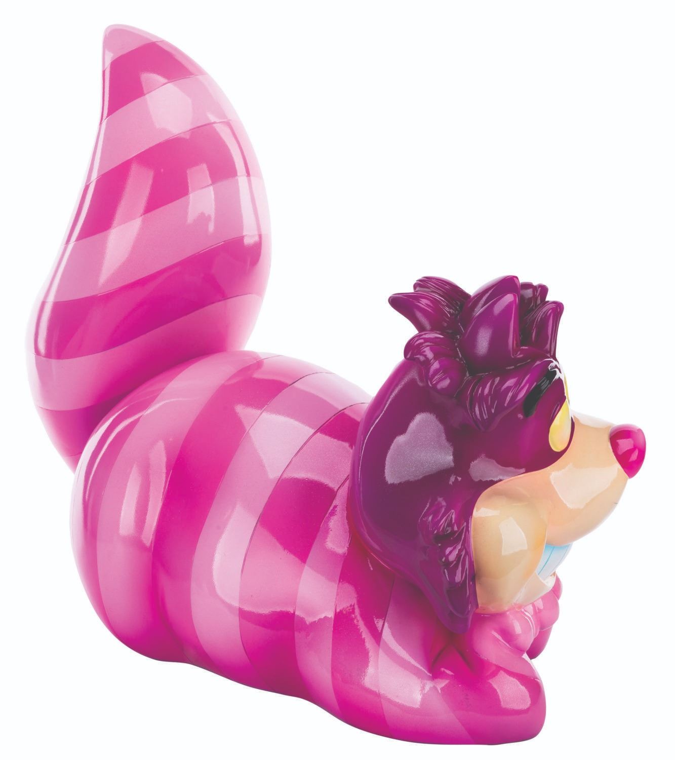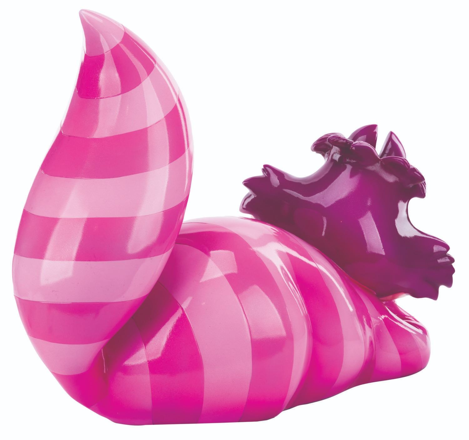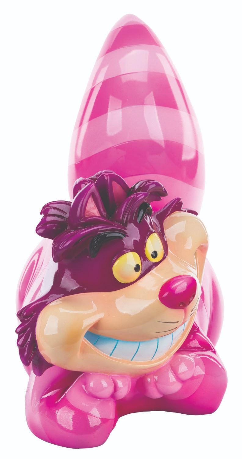 (Disney, 1990s-2000s) A Disney Store display figure of the Cheshire Cat with his distinctive pink stripes, toothy grin and goofy yellow eyes. Measuring 12" x 25" x 21" tall, the figure is in very good condition with light scuffs, scratches, and wear.