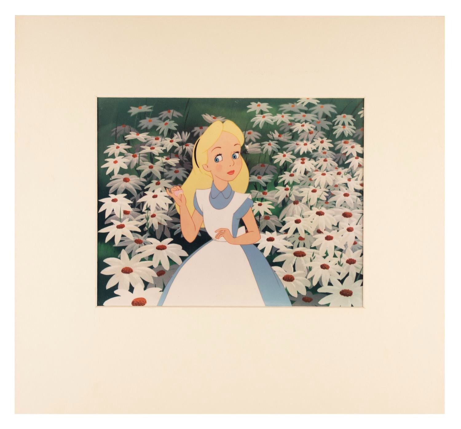 (Disney, 1950s-80s) A Disney Studio photographic dye transfer of a scene from “Alice in Wonderland.” Dye transfers such as these were given as gifts to visitors of the Studio and sold through the Art Corner at Disneyland. Measuring 9.5” x 11.75” on a 15” x 16” matte, the art is in fair condition with heavy scratches, scuffs, and wear.