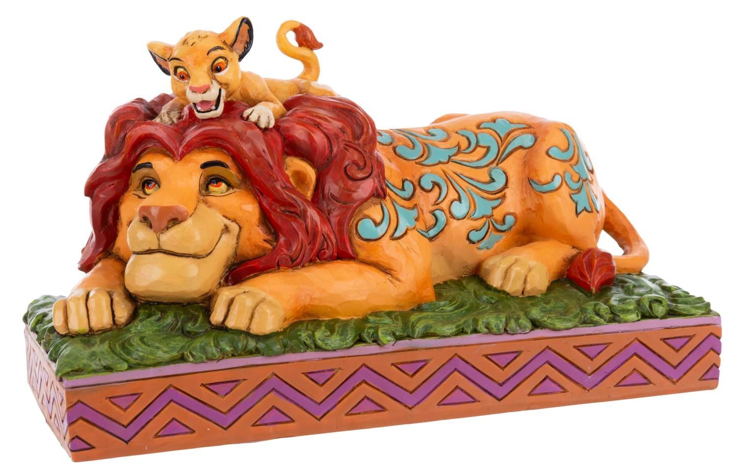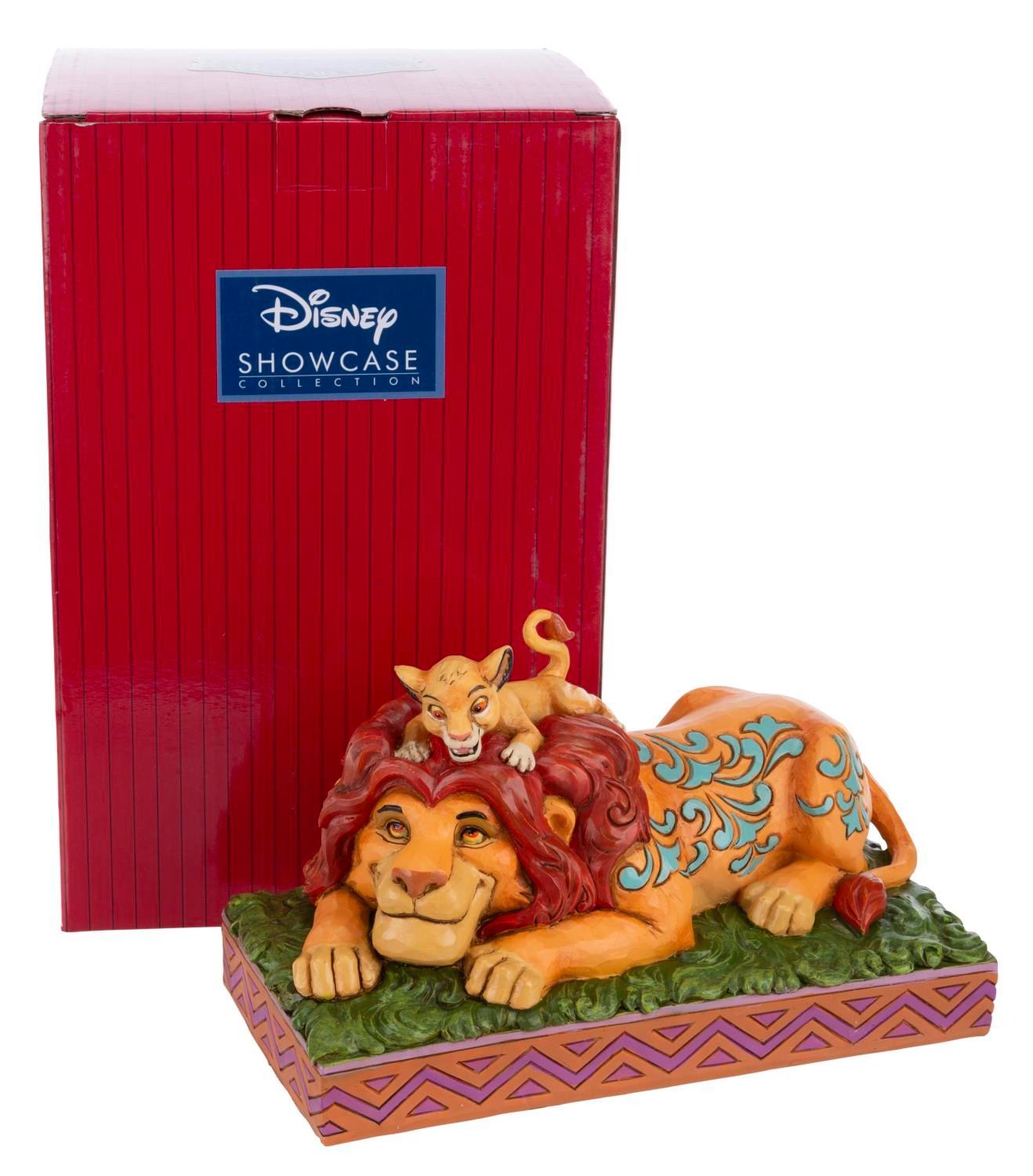 (Enesco, 2018) A Disney Traditions “A Father’s Pride” stone resin figurine of Simba and Mufasa designed by Jim Shore. Measuring 3.75” x 7.5” x 4.5” high, the figure is in fine condition, with the original box.