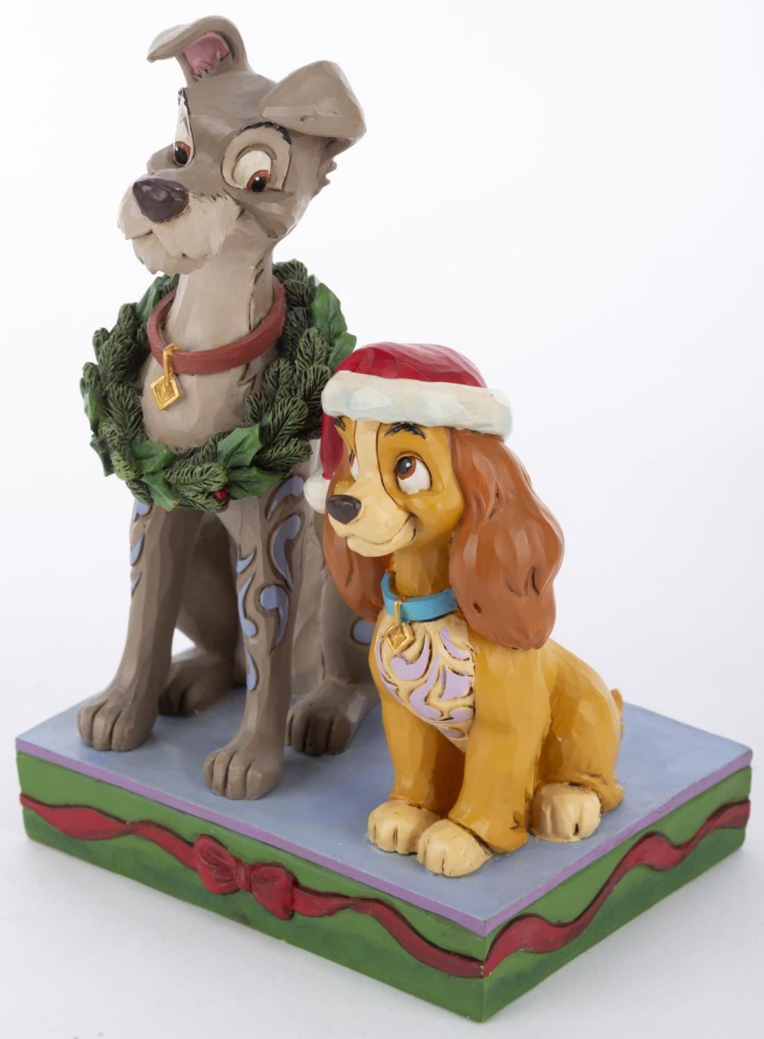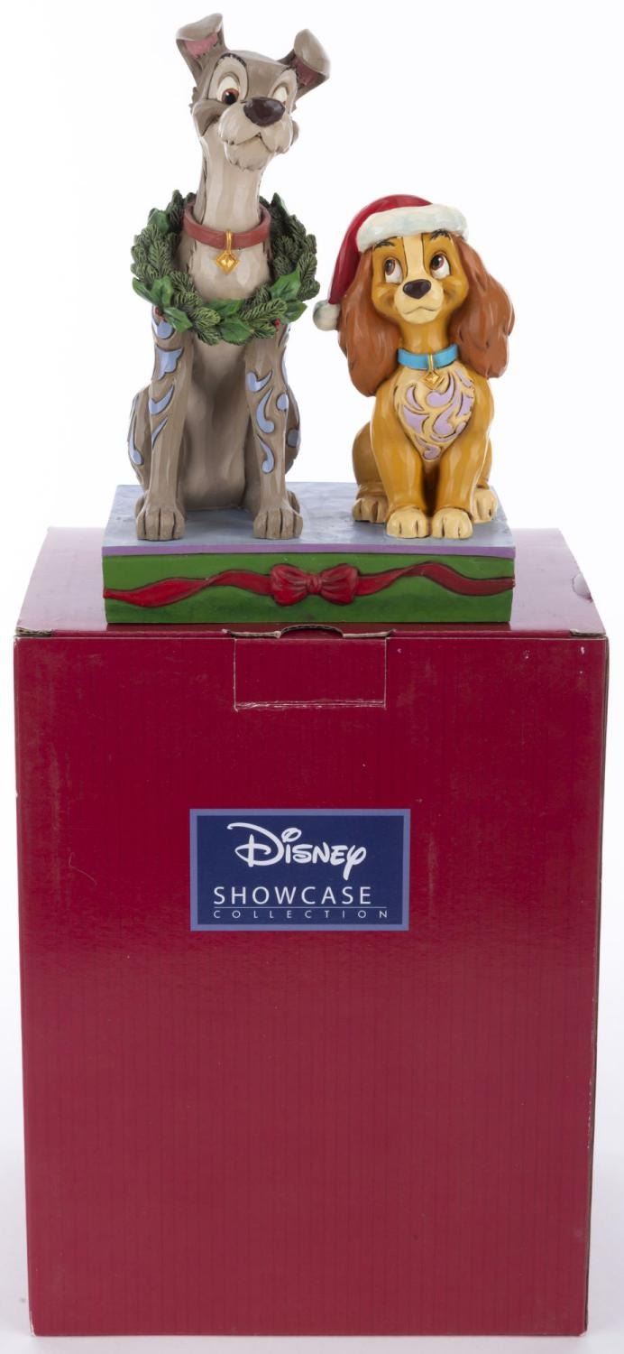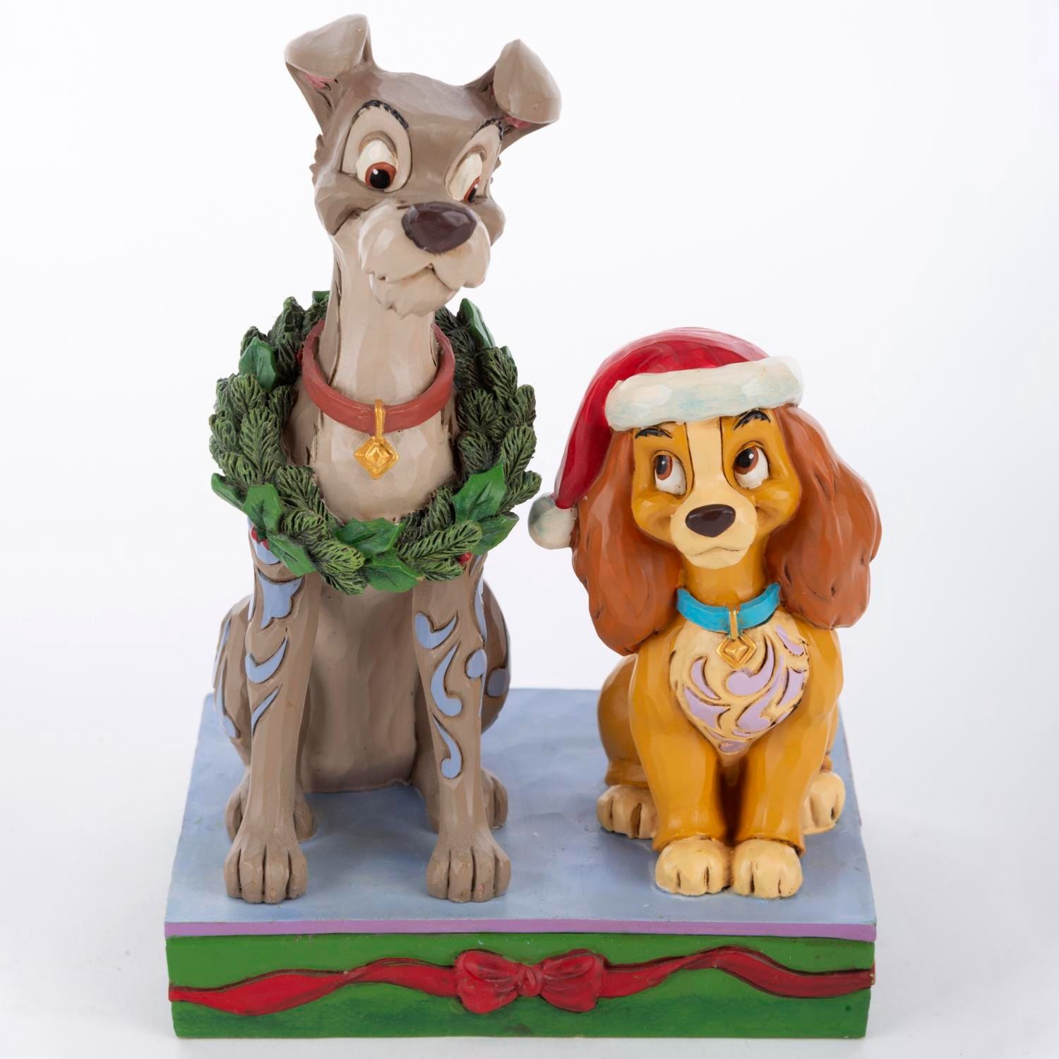 (Enesco, 2020) A Disney Traditions ‘Decked Out Dogs’ figurine of Lady and the Tramp designed by Jim Shore. Measuring 4.5” x 3.75” and 6.5” tall, the figurine is in fine condition and comes with the original box.