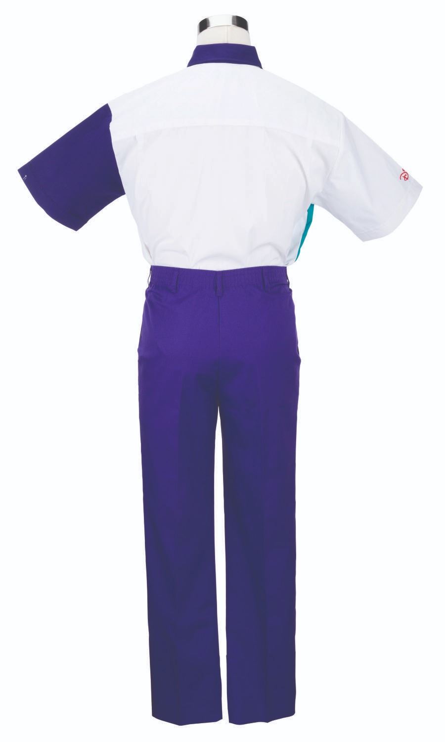(Walt Disney World, 2000s) A uniform shirt and pants worn by Cast Members working for Disney Transport. The shirt is labeled a size M and the pants a size 12, both in very good condition with light wear and a stain on the collar.