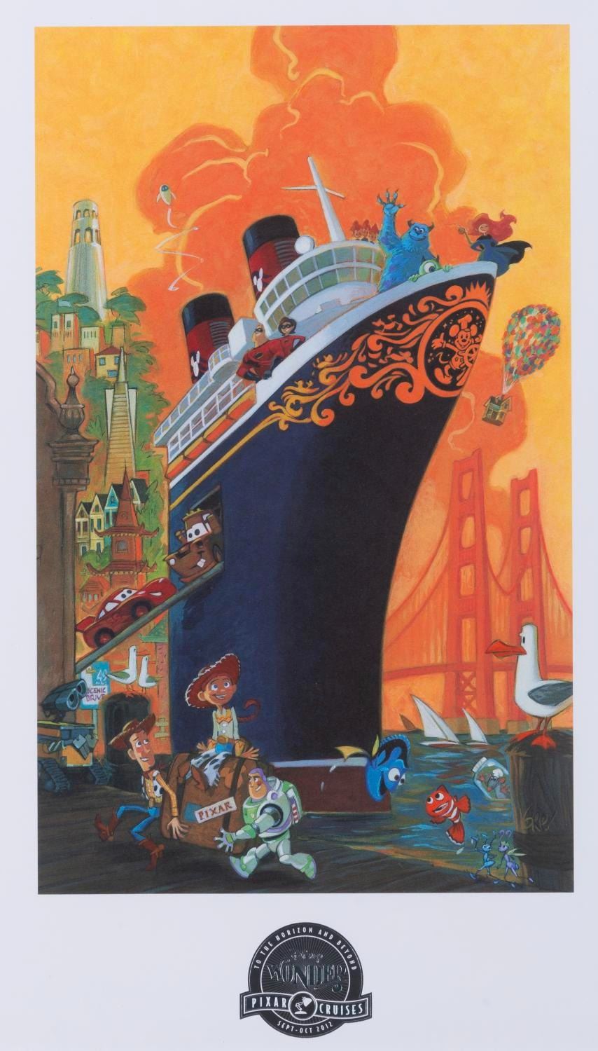 (Disney, 2012) A commemorative poster given to passengers aboard the Disney Wonder Pixar Cruise September through October 2012. Measuring 16” x 20”, the poster is in very good condition.