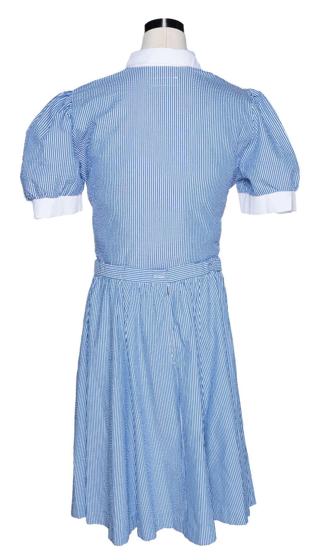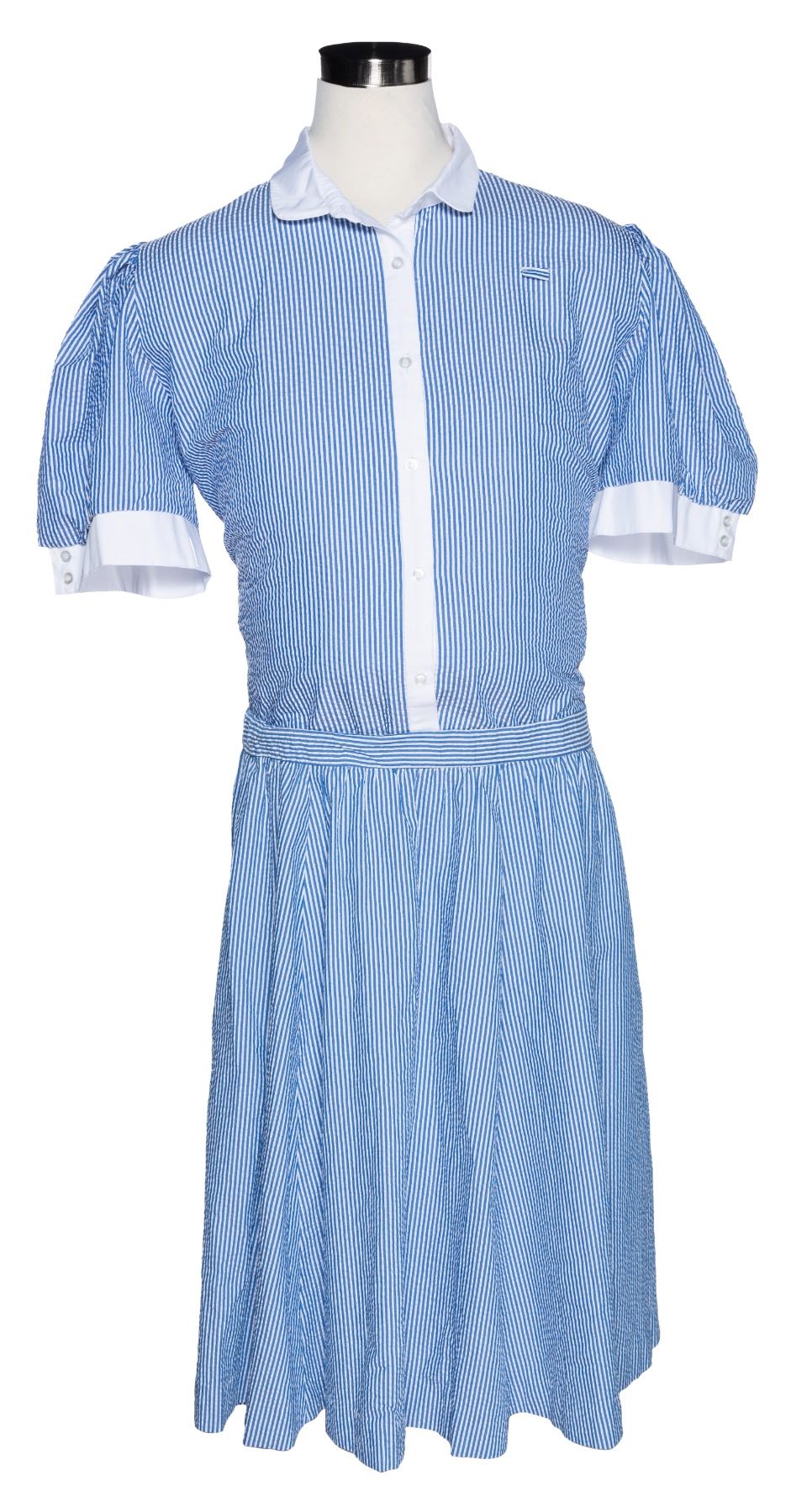 (Disney’s Boardwalk Resort, 1990s-2000s) A shirt and dress worn by housekeeping Cast Members working at Disney’s Boardwalk Resort. The shirt is labeled a female size 30 and the skirt a size 30x28, both are in very good condition with very light wear.