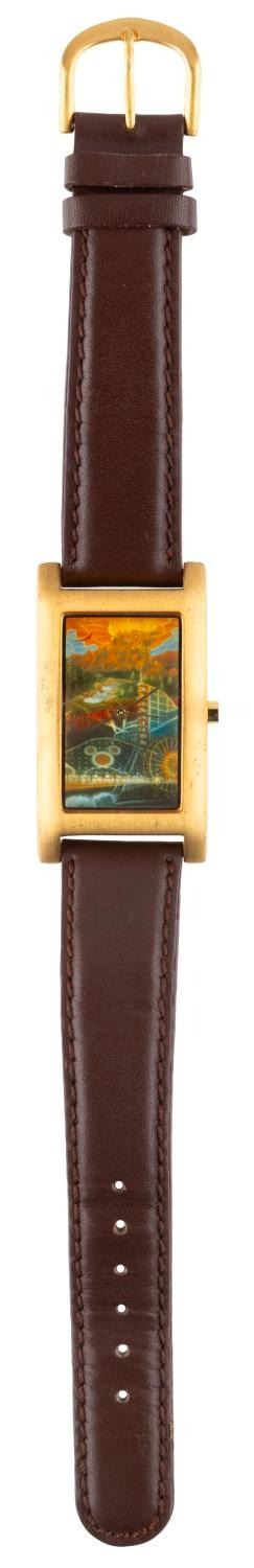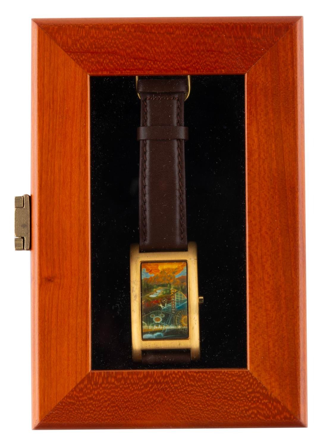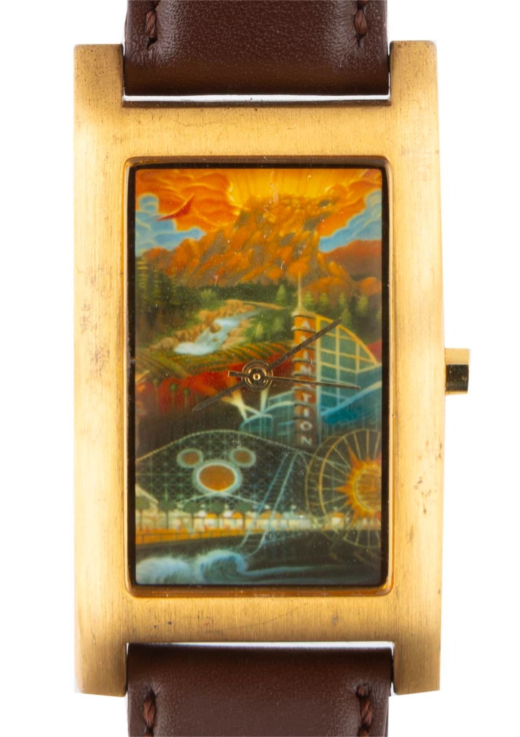 (Disney’s California Adventure, 2001) A Disney’s California Adventure grand opening watch. The reverse of the face features engravings commemorating the occasion and date, February 8, 2001. The watch, which comes with its original box, is in good condition and may require a new battery and service to function.