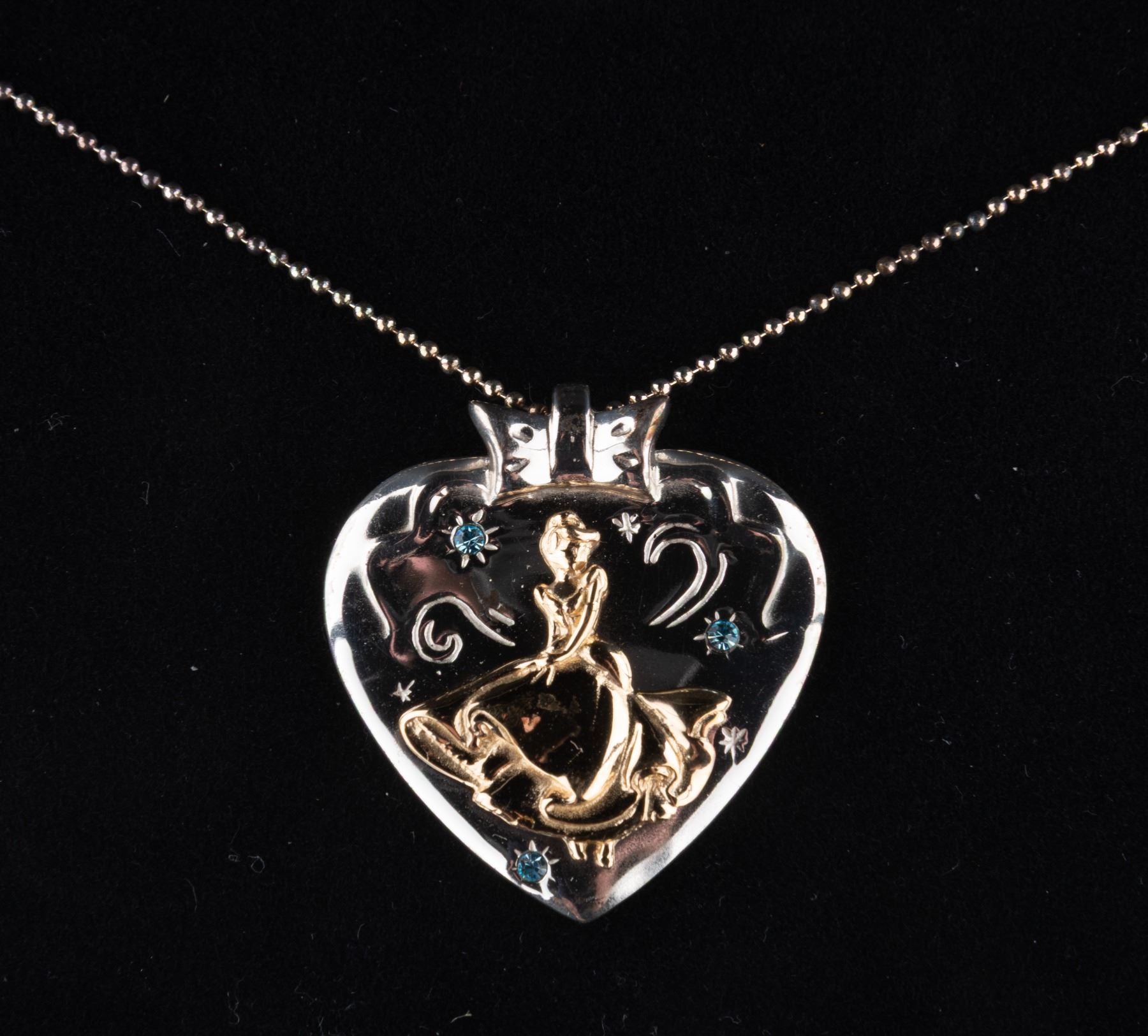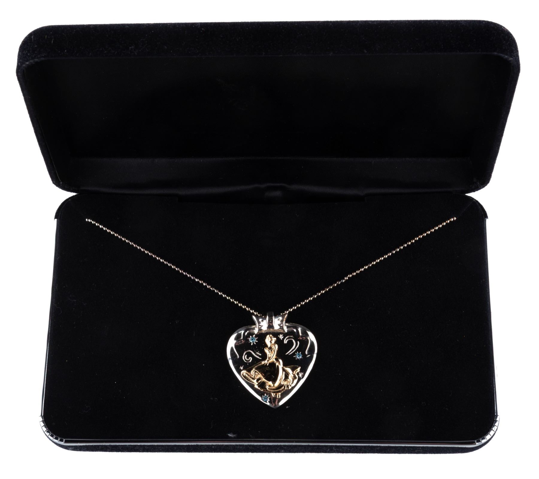 (Disney Catalog, 1996) A heart-shaped sterling silver Cinderella necklace, released in a limited edition of 2500 by the Disney Catalog. Numbered 113/2500, the necklace with a 1.5" x 1.25" pendant is in fine condition with the original box.