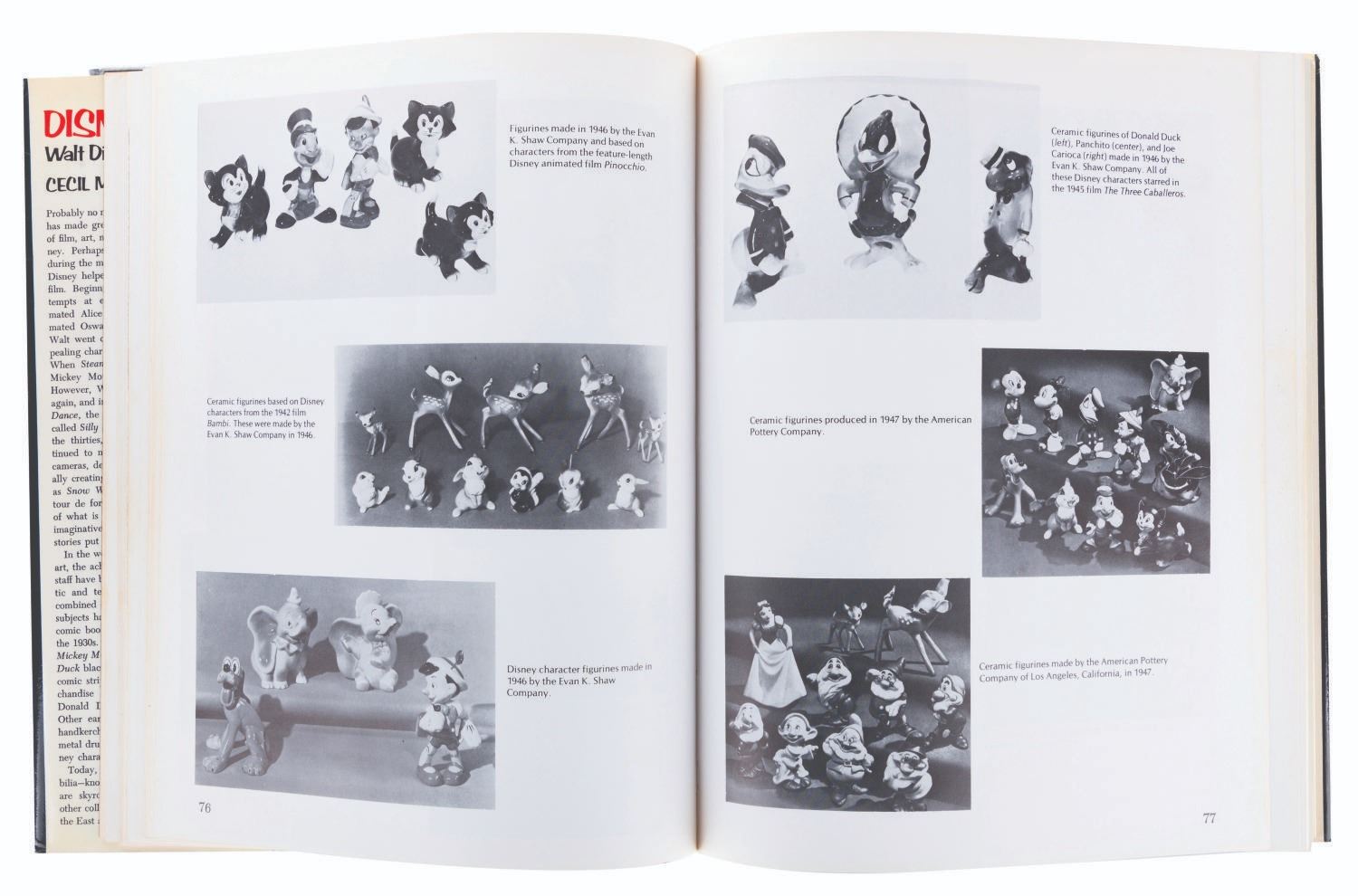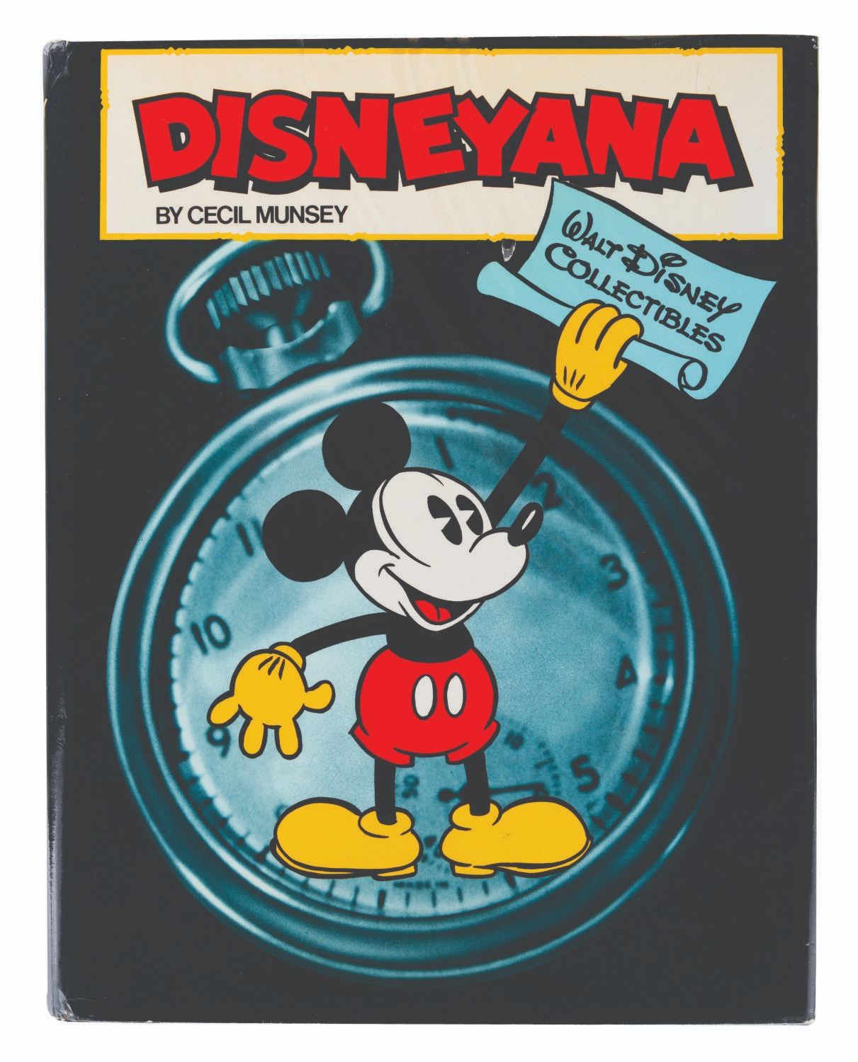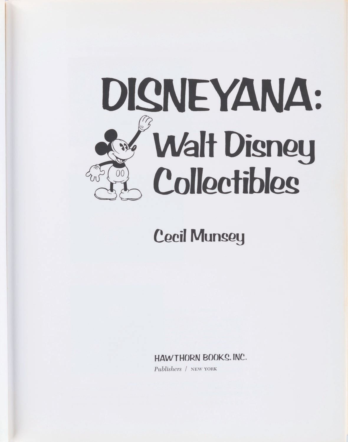 (Hawthorn Books, Inc., 1974) A Disneyana: Walt Disney Collectibles book by Cecil Munsey. This 385-page book is regarded as one of the most significant and comprehensive books on Disney collections from the 1920s to the 1970s, featuring photos and information on rare early collectibles. Measuring 8.75” x 11.25”, the book is in good condition with discoloration from age and heavy wear on the dust jacket including creases, scratches, and a 0.25” tear near the top.